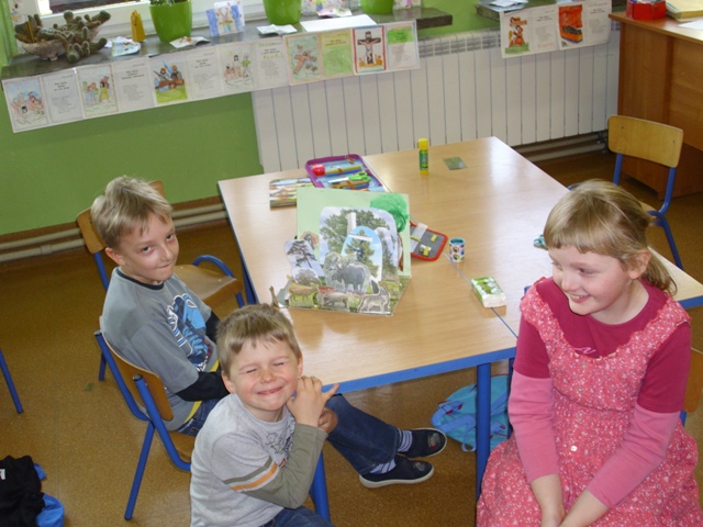Od marca do maja w sobotnie poranki i jedno środowe popołudnie uczniowie klasy I brali udział w zajęciach projektowych „Zabawy w leśnej szkole” w ramach projektu „ Fascynujący świat nauki i techniki” organizowany przez RCRE w Opolu. Uczestnicy projektu poznawali las: jego warstwy, mieszkańców i rośliny. Podczas zajęć, dzięki współpracy z Nadleśnictwem w Zawadzkim, uczestniczyli w spotkaniu z leśniczym na teranie „Rybaczówki” ,gdzie obserwowali zmiany zachodzące w lesie wiosną. Zbiorowy wysiłek zaowocował wykonaniem gier planszowych dotyczących lasu i makiety przedstawiającej leśne rośliny i zwierzęta. Uczestnicy nie tylko pracowali wytrwale lecz również bobrze wspólnie się bawili.