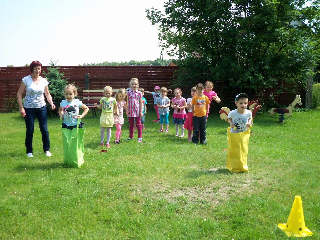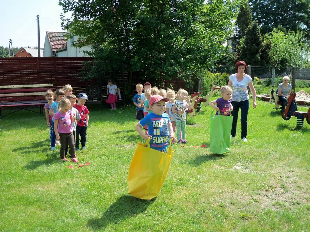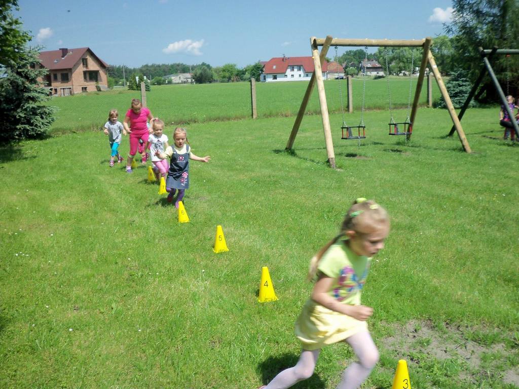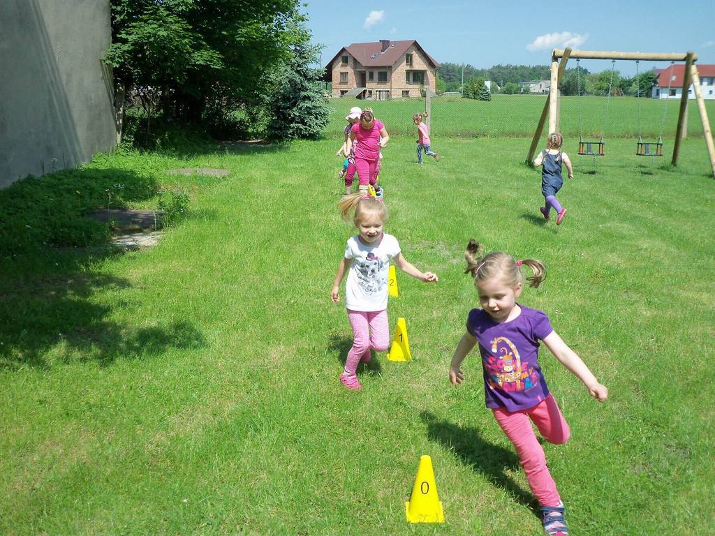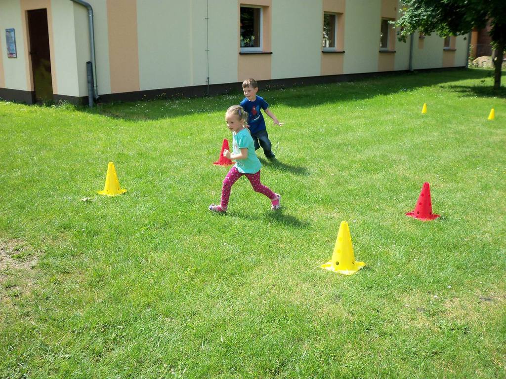 Dzisiejszy piękny dzień przedszkolaki wykorzystały na sportowo. Dla każdej grupy- maluchów i starszaków- zostały zorganizowane różne konkurencje sportowe. Najpierw do rywalizacji przystąpiły maluszki. Wszystkie dzieci bardzo chętnie brały udział w poszczególnych konkurencjach, które miedzy innymi polegały na skakaniu w workach, pokonywaniu toru przeszkód. Każdy przedszkolak był bardzo zaangażowany w rywalizację, która wywołała na ich buziach dużo uśmiechu. Zaraz po zakończeniu mini zawodów wszystkie przedszkolaki otrzymały soczki i słodkie nagrody. Zachęcamy do obejrzenia zdjęć ze zmagań sportowych najmłodszych.