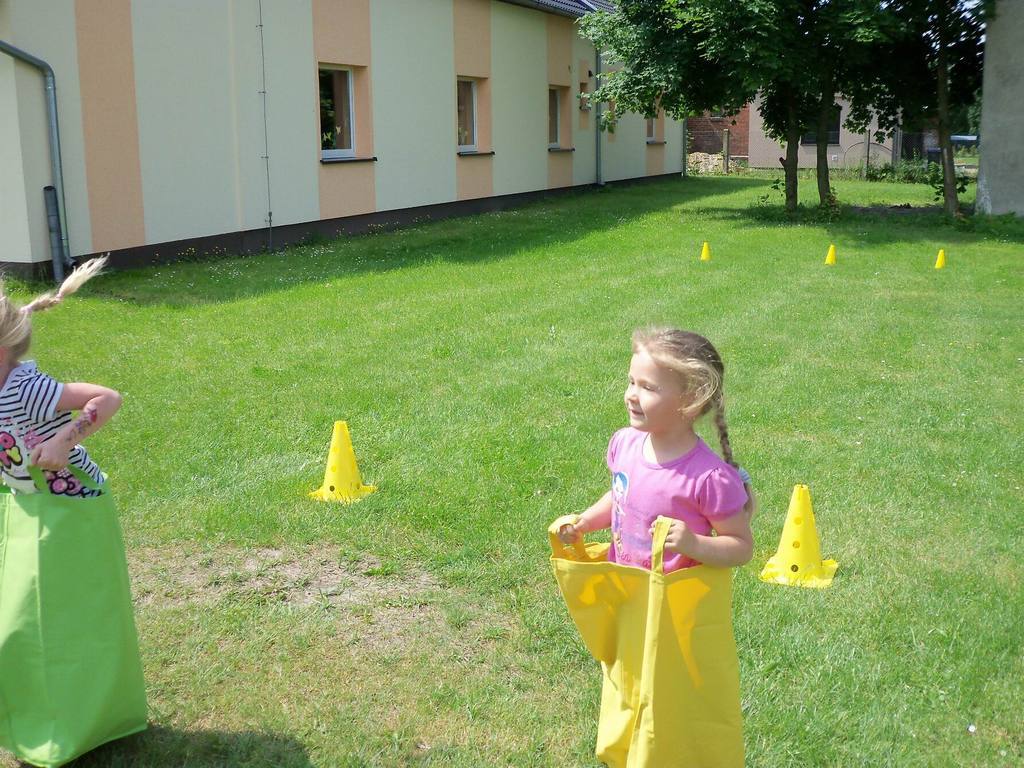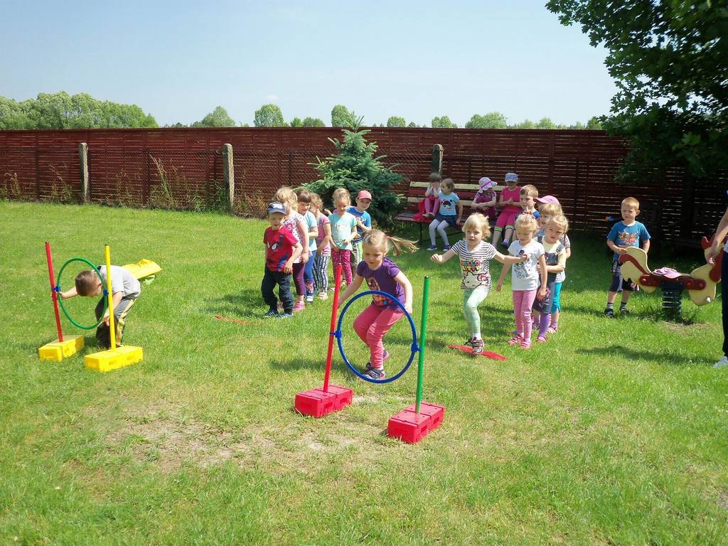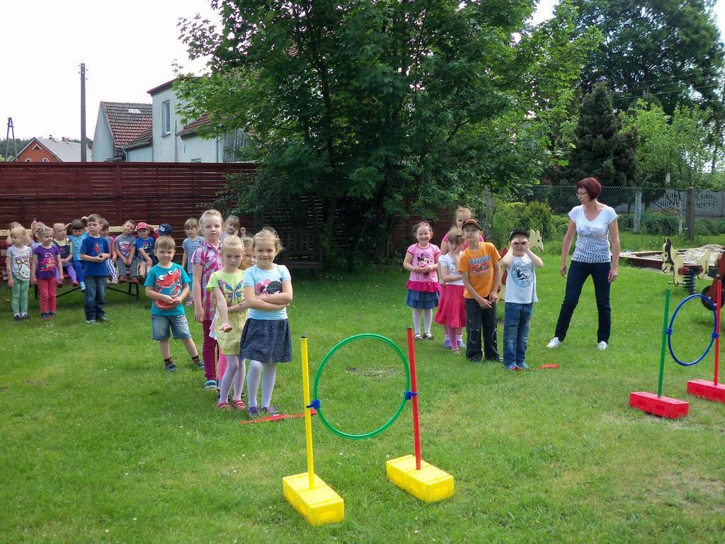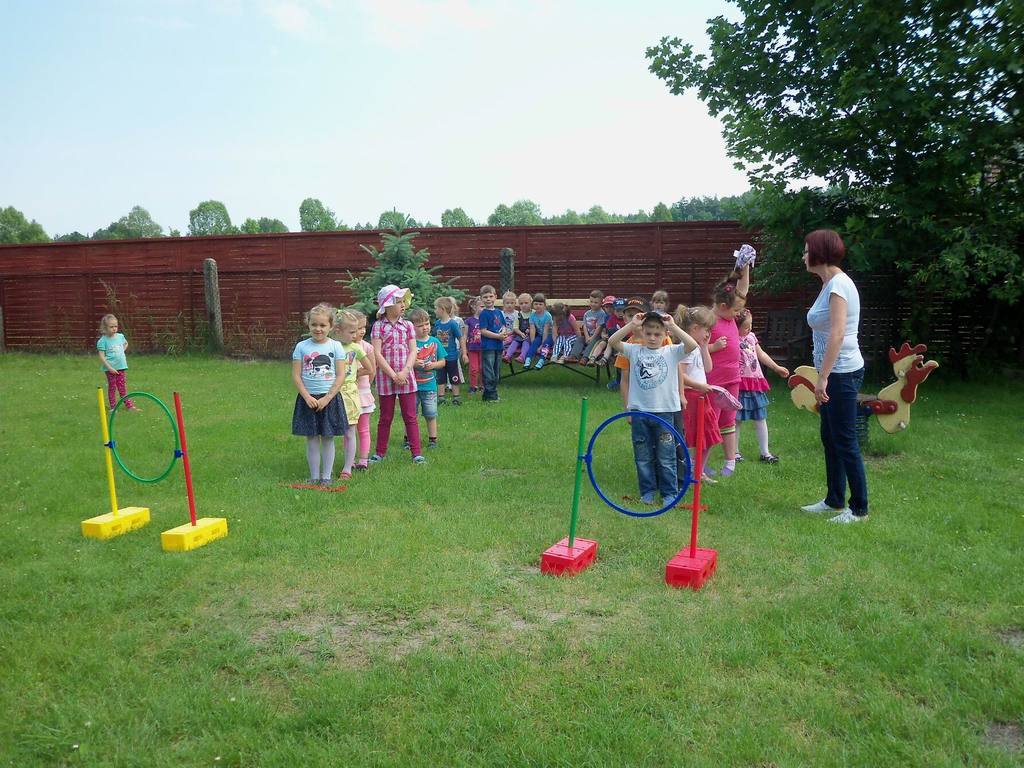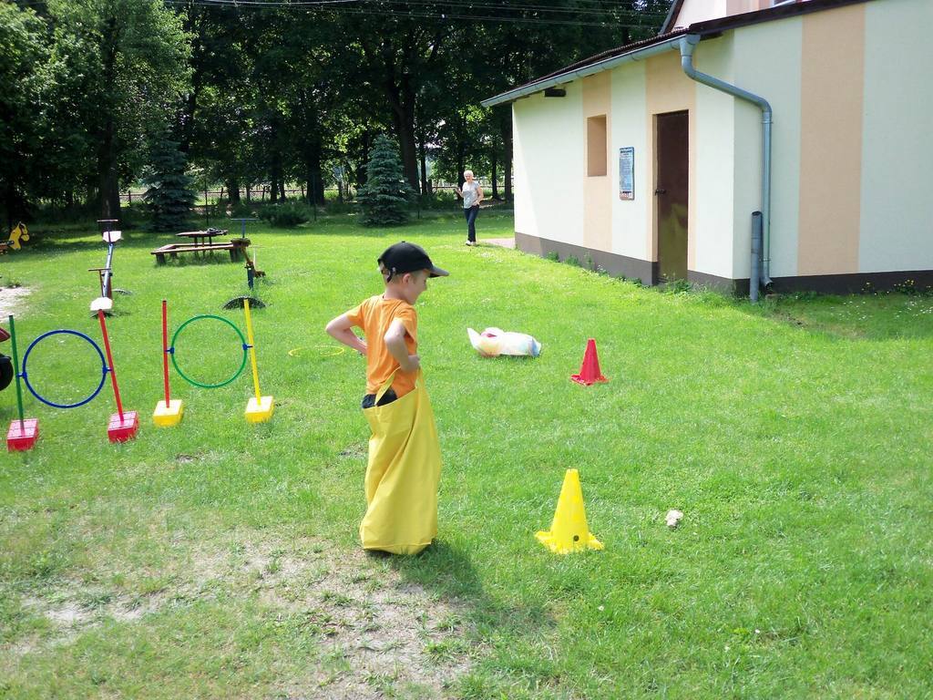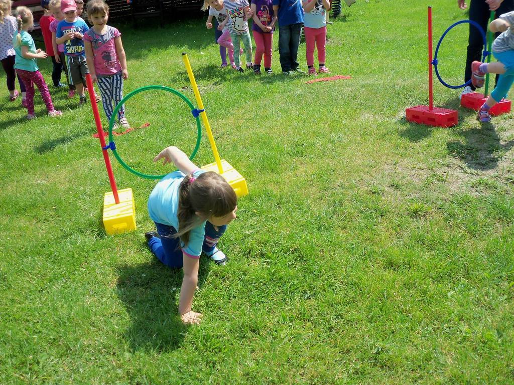 Dzisiejszy piękny dzień przedszkolaki wykorzystały na sportowo. Dla każdej grupy- maluchów i starszaków- zostały zorganizowane różne konkurencje sportowe. Najpierw do rywalizacji przystąpiły maluszki. Wszystkie dzieci bardzo chętnie brały udział w poszczególnych konkurencjach, które miedzy innymi polegały na skakaniu w workach, pokonywaniu toru przeszkód. Każdy przedszkolak był bardzo zaangażowany w rywalizację, która wywołała na ich buziach dużo uśmiechu. Zaraz po zakończeniu mini zawodów wszystkie przedszkolaki otrzymały soczki i słodkie nagrody. Zachęcamy do obejrzenia zdjęć ze zmagań sportowych najmłodszych.