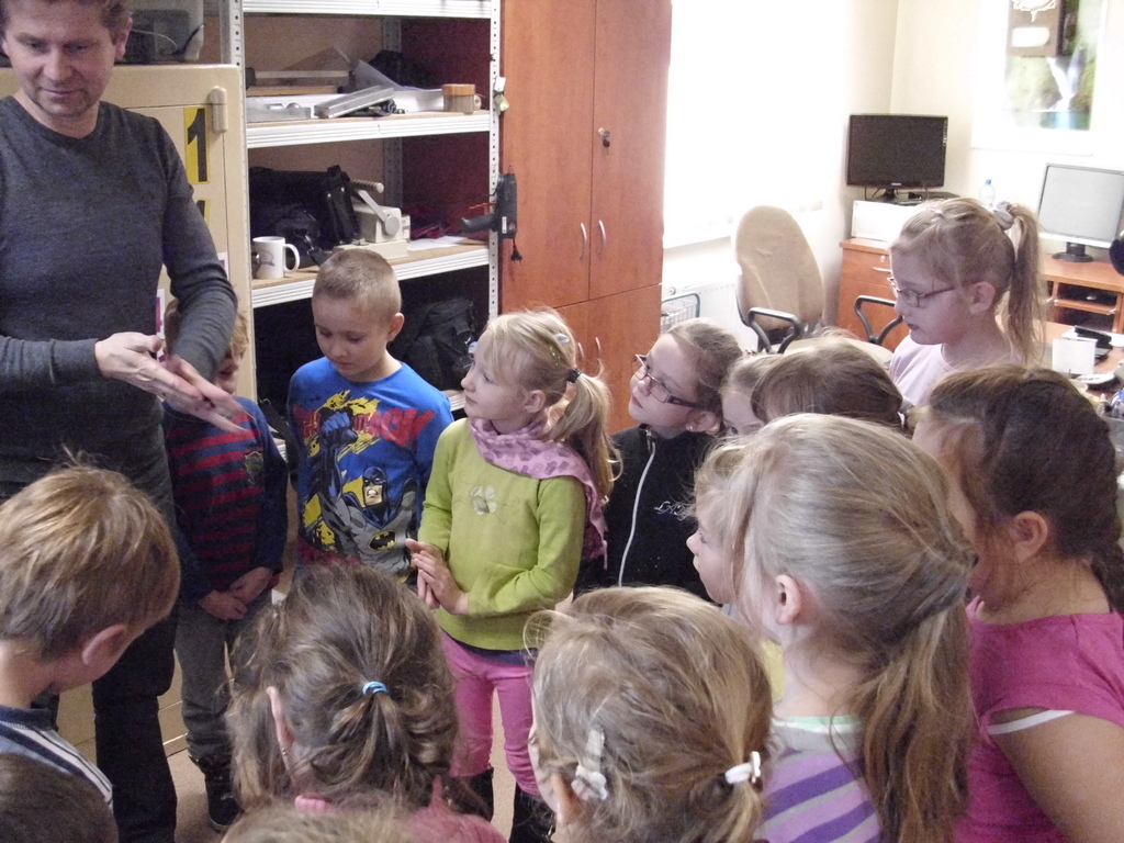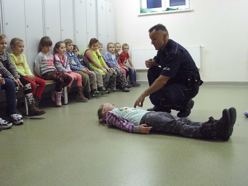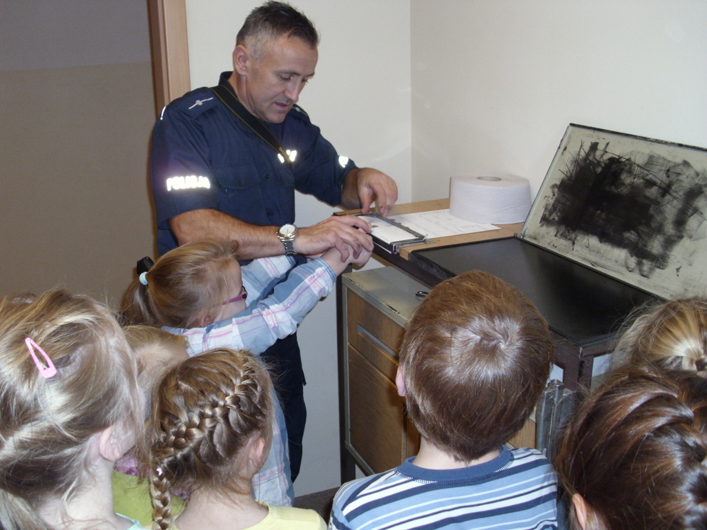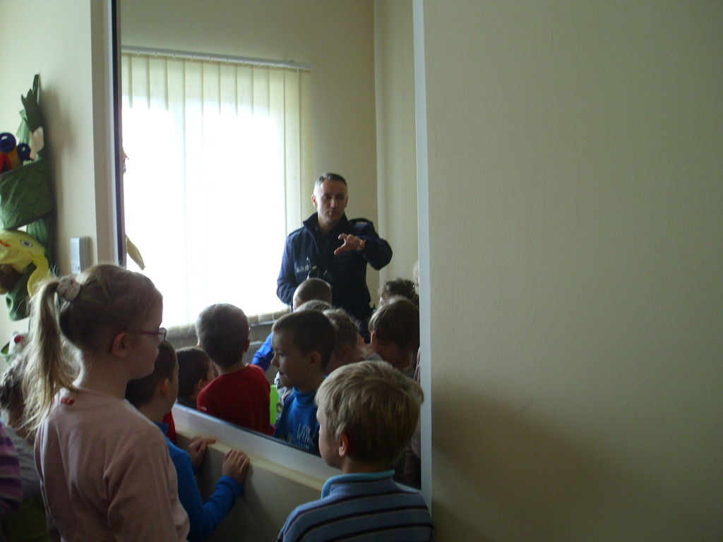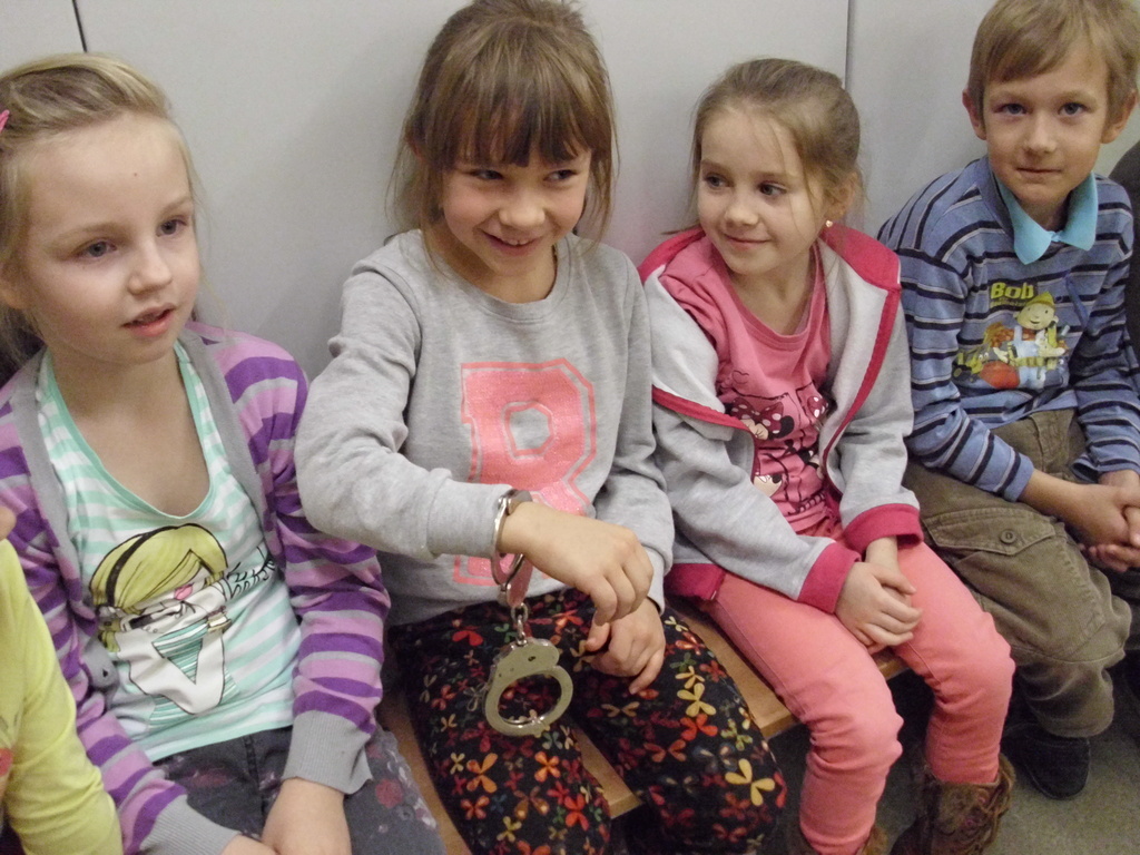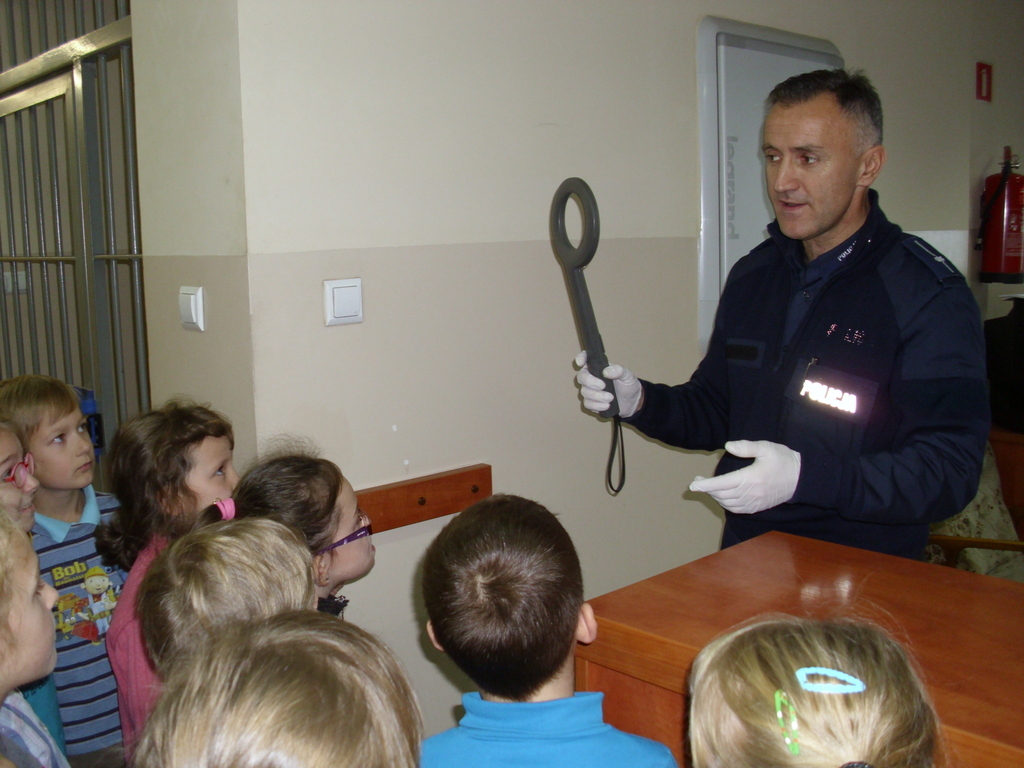 24 listopada klasy I i II korzystając z zaproszenia policji zwiedziły Powiatową Komendę Policj w Oleśnie. Ucziowie mogli przyjrzeć się pracy technika policyjnego, zapoznać się z pracą dyżurnego policjanta. Mieli okazję zajrzeć do aresztu. Odwiedzili także pokój przesłuchań i tzw. Niebieski Pokój. Przeglądali się w weneckim lustrze. Największą radość sprawił uczniom pokaz sprzętu policyjnego oraz możliwość jego przymierzenia. Na zakończenie uczniowie otrzymali upominki oraz pozowali do pamiątkowego zdjęcia. Policjanci obiecali, że wiosną odwiedzą szkołę w towarzystwie psa policyjnego. Wizyta na posterunku i podglądanie pracy policji bardzo podobała się naszym najmłodszym uczniom.