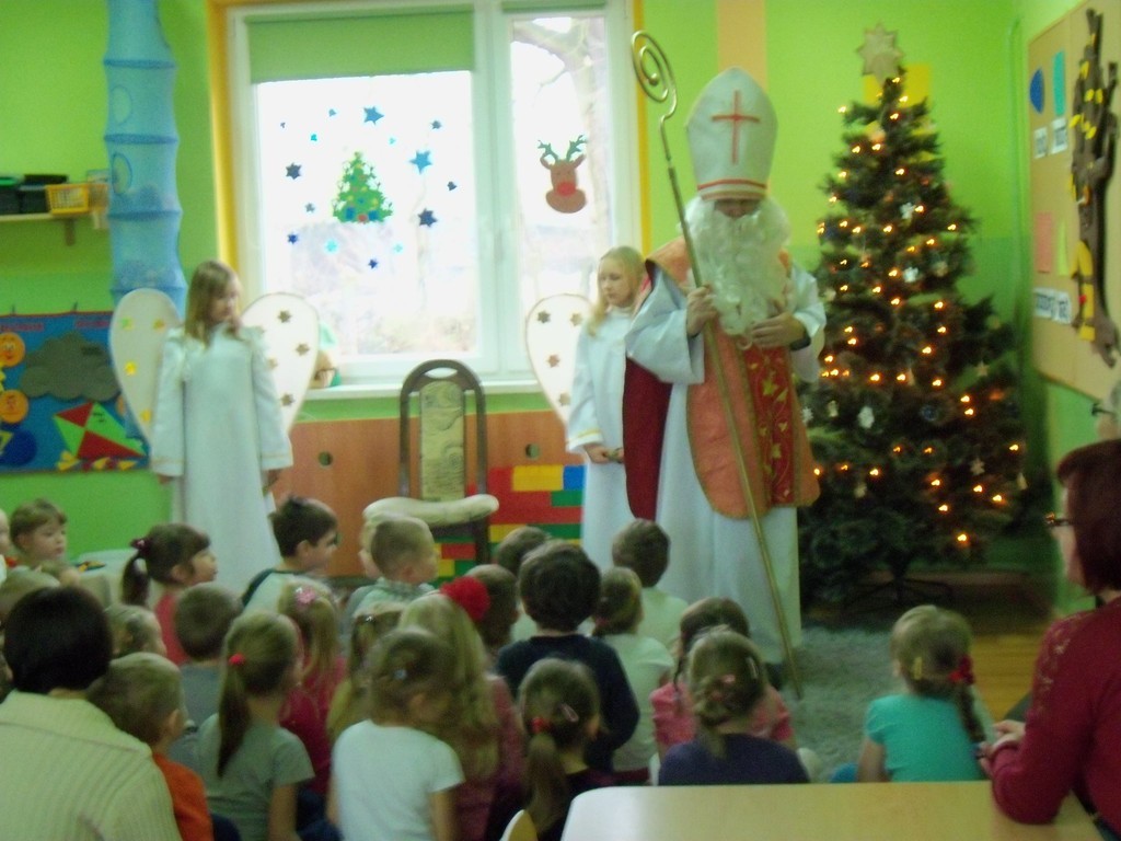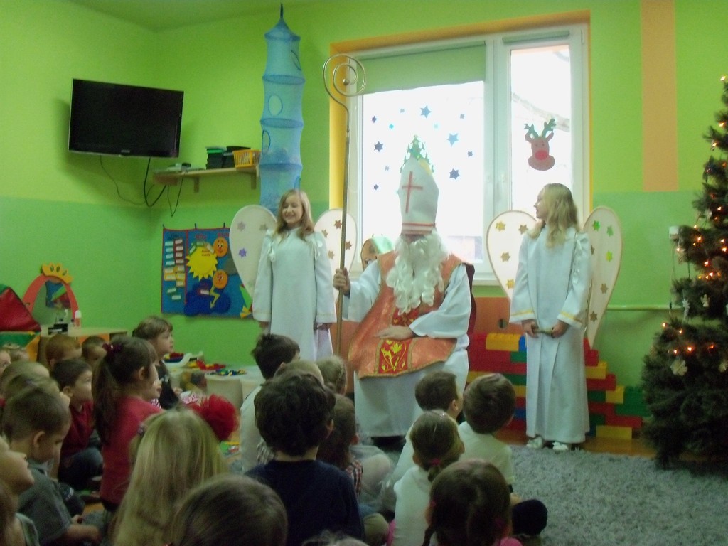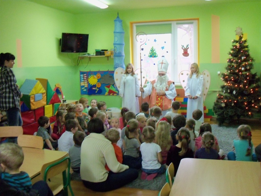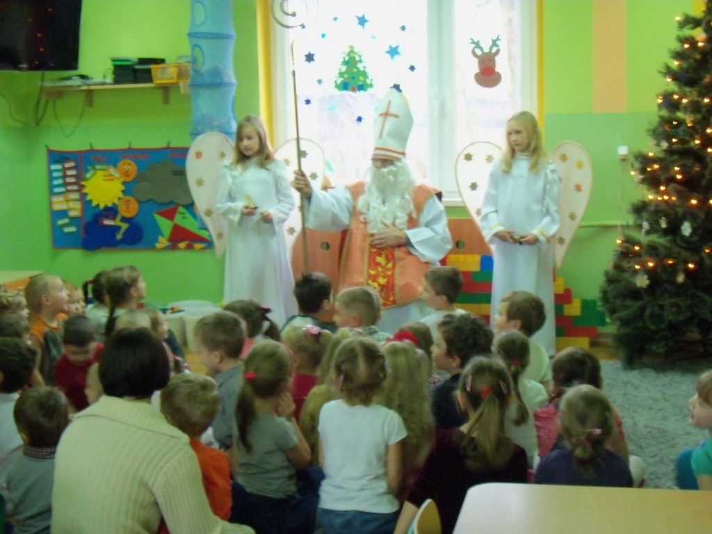 Dzisiaj nasze przedszkole odwiedził Św. Mikołaj, który przyniósł dzieciom prezenty. Przedszkolaki przywitały go z radościa i zaśpiewały piosenki przygotowane specjalnie dla Niego. Obiecały również, że będą grzeczne przez cały rok.