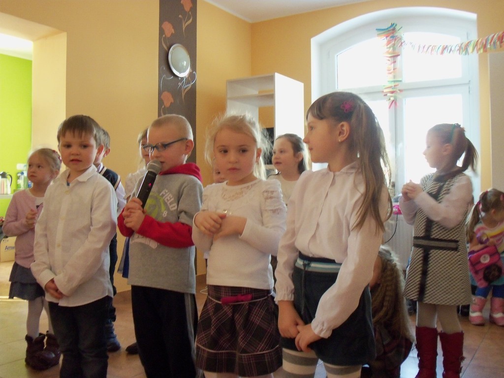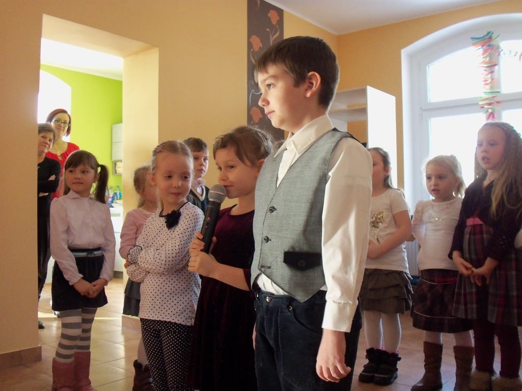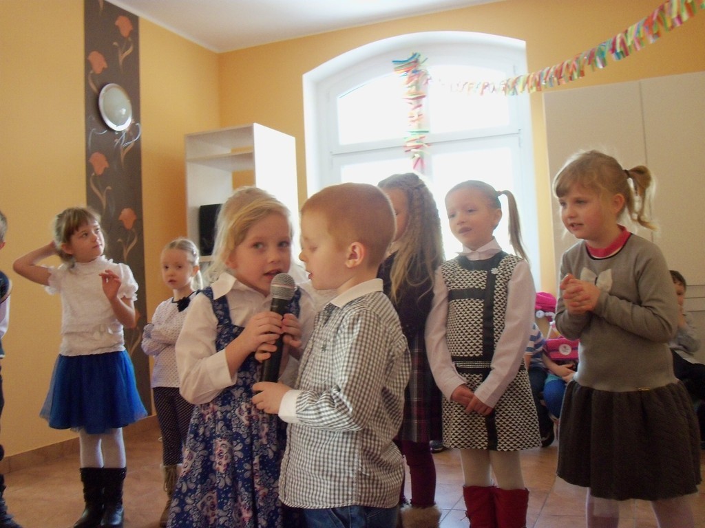 W dniu dzisiejszym nasze przedszkolaki gościły swoje kochane babcie i dziadków. Występy artystyczne i poczęstunek dla gości odbyły się w budynku starej szkoły, gdzie całą uroczystość pomogły zorganizować mamy, p. Anna Maroń i p. Sylwia Świtała, którym w imieniu naszym i dzieci bardzo, bardzo dziękujemy. Uroczystość była pełna radości i wzruszeń. Dzieci oprócz życzeń obdarowały swoich drogich gości własnoręcznie zrobionymi laurkami i upominkami.