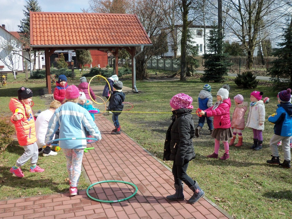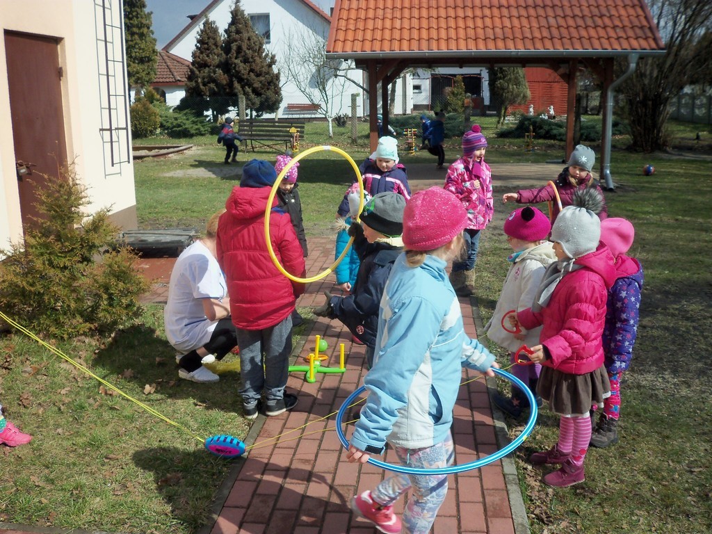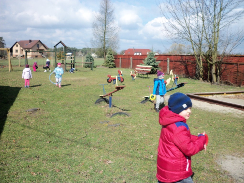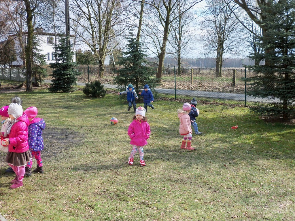 Dzisiejszy dzień dla przedszkolaków był wyjątkowo radosny, bo gdy dzieci spacerowały z Marzanną przedszkole odwiedził zajączek. Zostawił w ogrodzie mnóstwo prezentów. Dzieci ochoczo szukały wszystkich prezentów, którymi od razu na podwórku mogli się wszyscy pobawić. Gdy dzieci wychodziły do domu, to każdy otrzymał jeszcze soczek od zajączka.