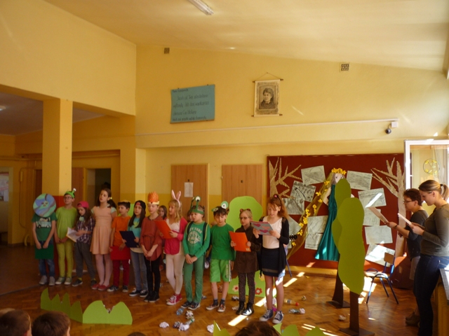 Z okazji przypadającego 22 kwietnia Dnia Ziemi, uczniowie klasy IV wraz z wychowawczynią przygotowali przdstawienie o temetyce ekologicznej, które poruszało problem zanieczyszczania środowiska. Zwierzątka leśne oraz Ufoludki uczyły dzieci, jak dbać o nasze środowisko.