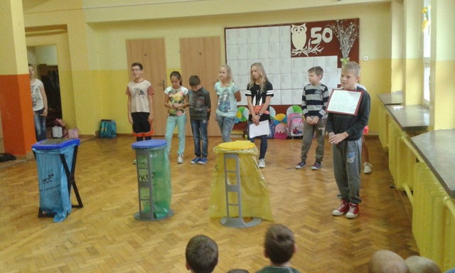 W dniu 19 września odbyła się w naszej szkole kolejna edycja akcji Sprzątanie Świata. klasa V przygotowała z tej okazji przedstawienie, uczniowie wykonali plakaty na temat drugiego "życia " śmieci, tradycyjnie też przeszliśmy ulicami Pluder, aby "trochę posprzątać" - uwieńczeniem tego dnia był poczęstunek zakupiony przez Radę Rodziców.