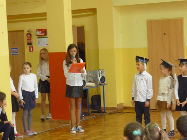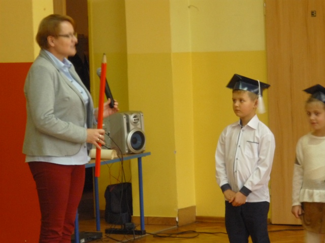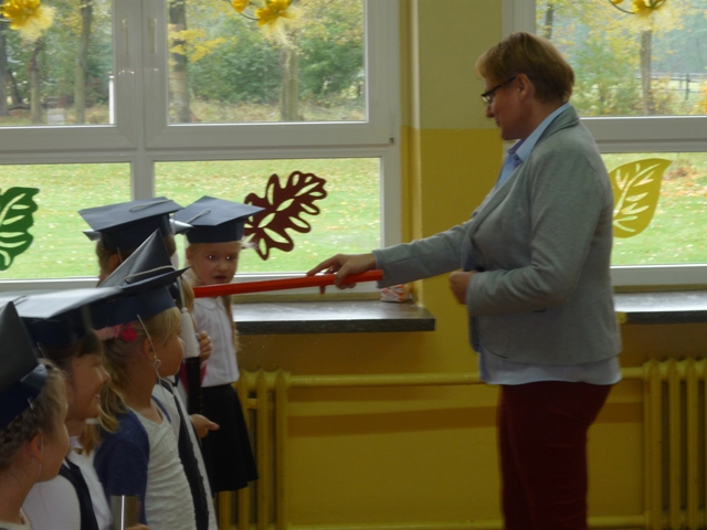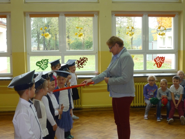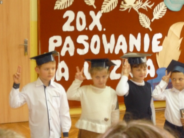 W czwartek, 20 października, odbyło się w naszej szkole uroczyste pasowanie na ucznia. Dziewięcioro uczniów poprzez piosenki i wierszyki udowodniło swoim starszym kolegom, nauczycielom oraz rodzicom, że zasługują na to, aby włączyć ich do społeczności uczniowskiej. Pani Dyrektor tradycyjnym, ceremonialnym ołówkiem pasowała ich na uczniów naszej szkoły, dzieci złożyły uroczyste ślubowanie i otrzymały szkolne legitymacje.