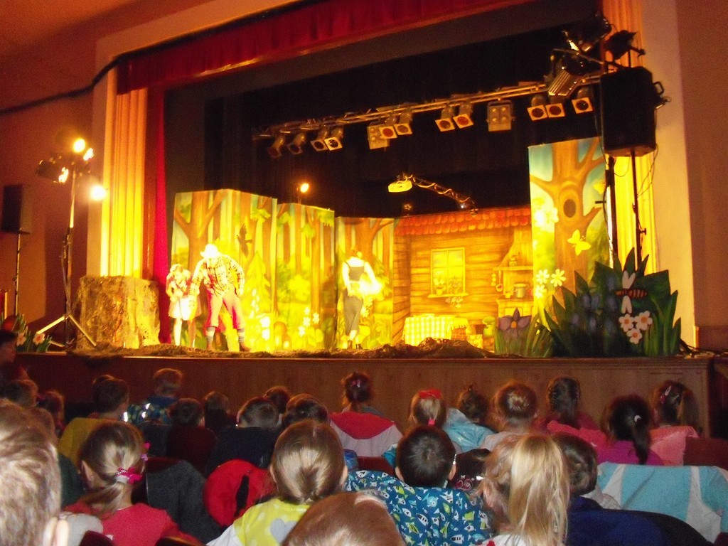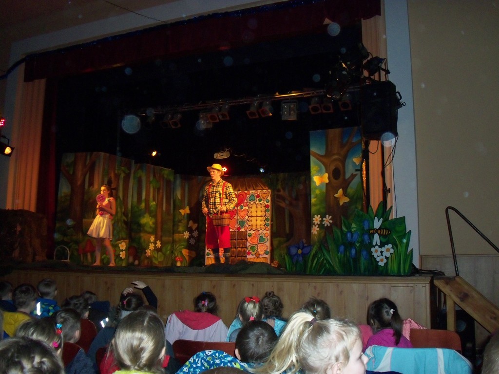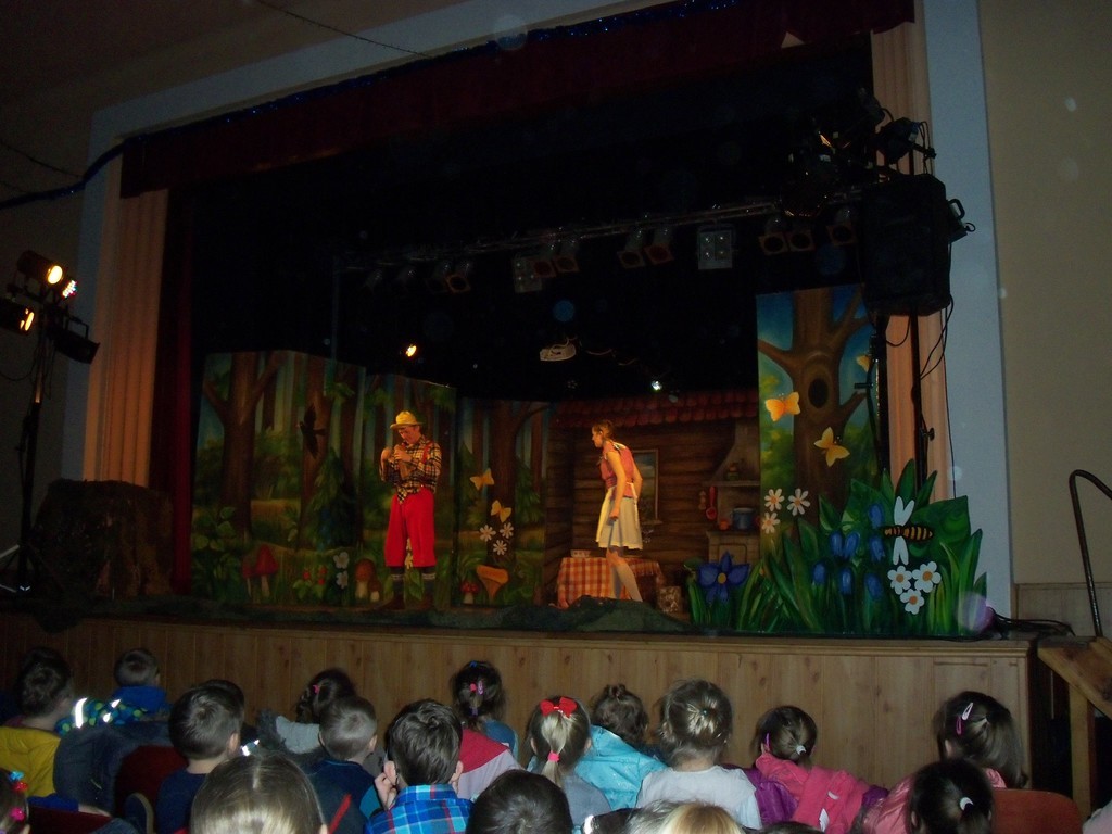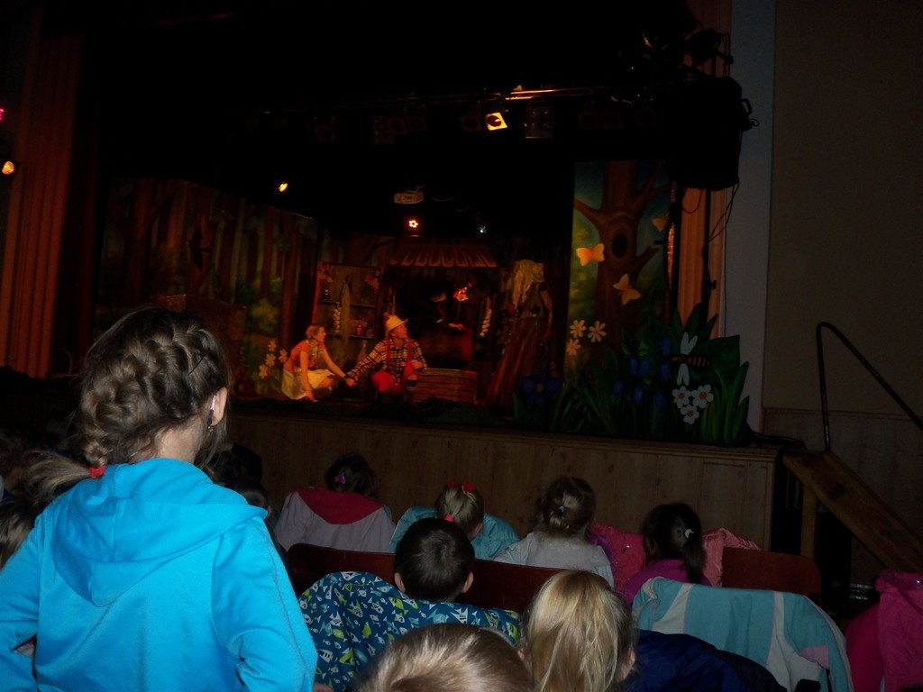 We wtorek dzieci ze szkoły jak i "starsze" przedszkolaki miały okazję oglądać w Domu Kultury w Oleśnie spaktakl pt. "Jaś i Małgosia". Wszystkim spektakl bardzo się podobał. Aktorzy mieli wspaniałe stroje, a dzieciom w pamięci szczególnie utkwiła malownicza postać Czarownicy. Dekoracje na scenie również robiły ogromne wrażenie.