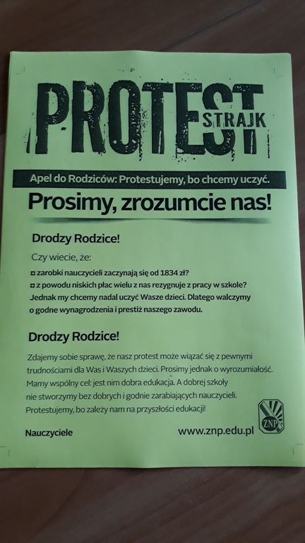 Informacje dotyczące strajku nauczycieli
