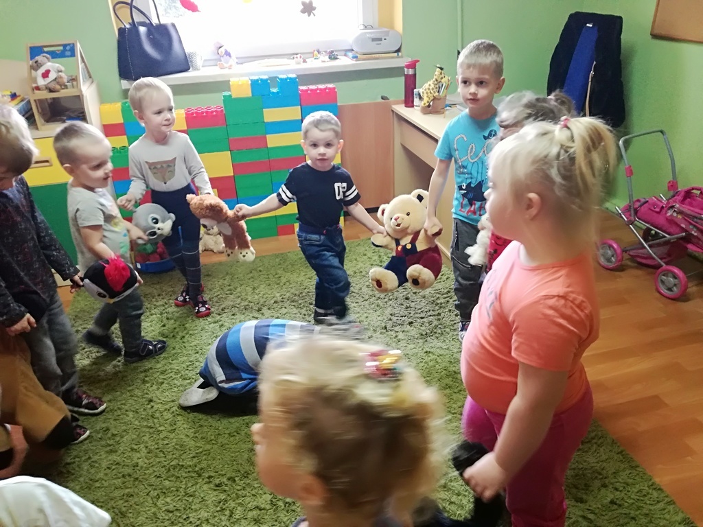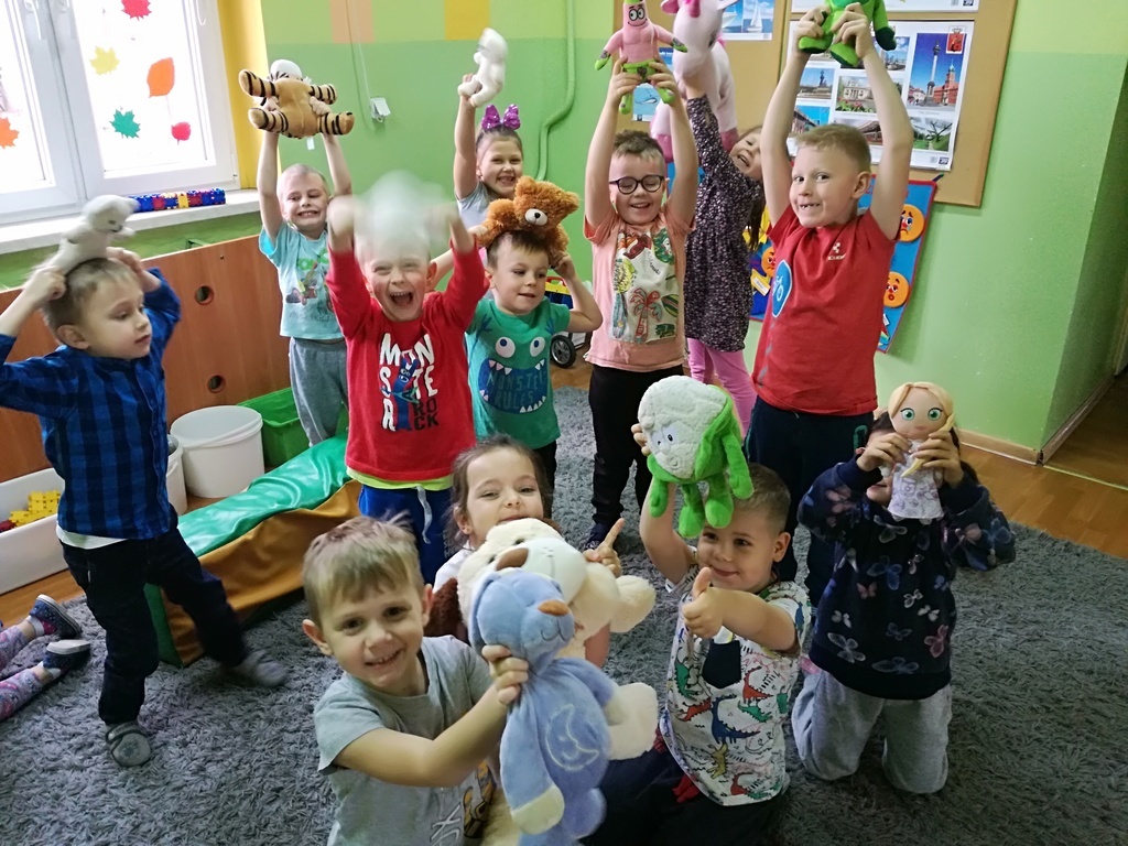 Dzisiaj w przedszkolu obchodziliśmy dzień pluszowego misia. Z tej okazji dzieci przyniosły swoje misie,przytulanki. Misie towarzyszyły nam cały dzień. Dzieci razem z pluszakami bawiły się w kole,tańczyły jak również uczyły się. Na koniec przedszkolaki wykonały pracę plastyczną-postać misia.