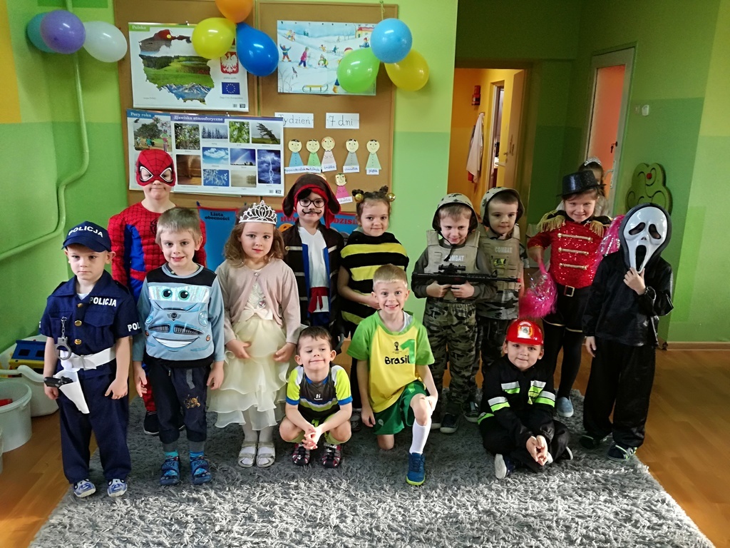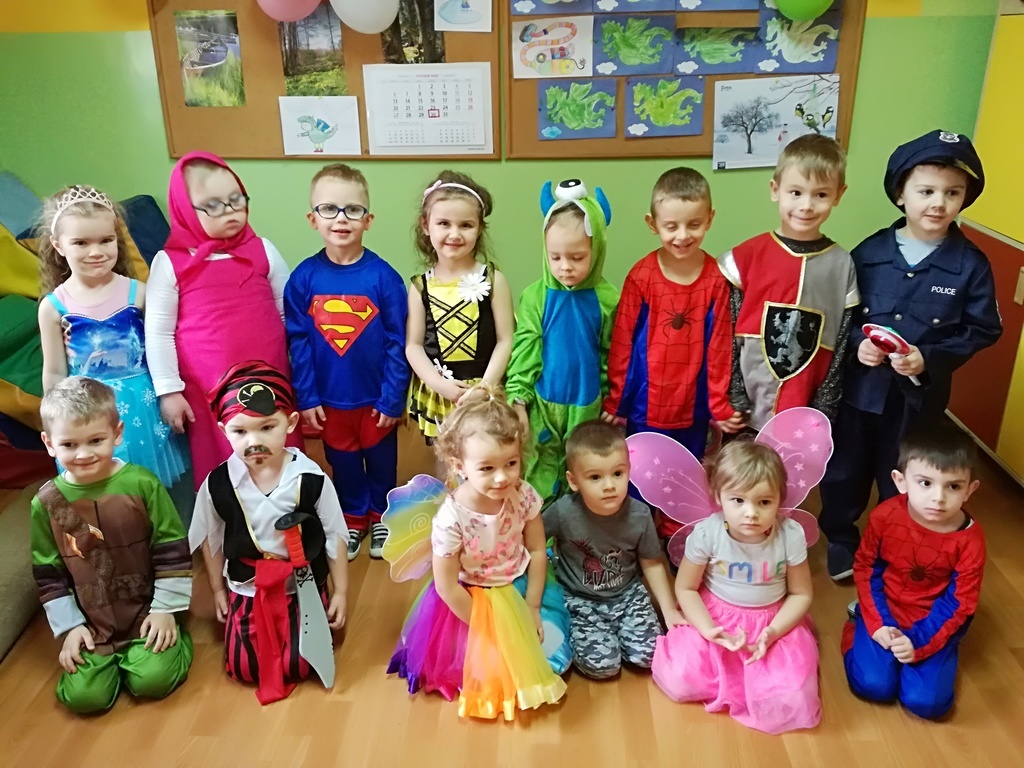 W miniony czwartek przedszkolaki uczestniczyły w balu karnawałowym. Sale na ten dzień zostały ozdobione balonami. Wszyscy przebrali się w piękne stroje- księżniczek, piratów, batmanów. Tańcom, zabawom, pląsom końca nie było. W czasie przerw czekała na wszystkich słodka przekąska.