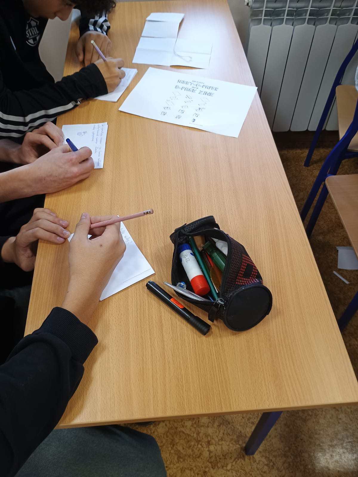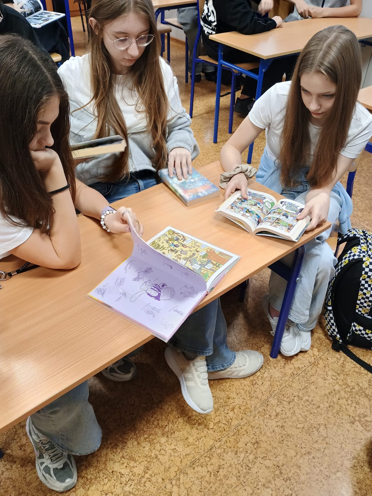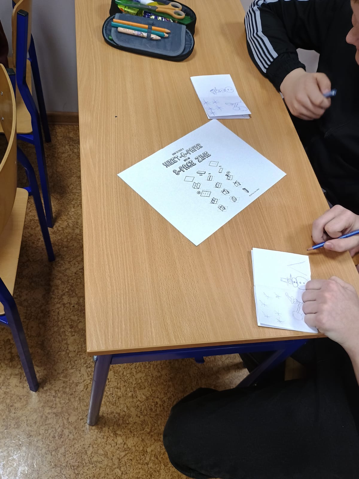 Liliana: "Na warsztatach mieliśmy okazję obejrzeć wiele różnych rodzajów komiksów. Poznaliśmy na przykład mangi, które wyróżniały się stylem i sposobem czytania. Oglądaliśmy także komiksy o Spider-Manie, pełne scen akcji. Duże zainteresowanie wzbudziły również opowieści o Avengersach. Nie zabrakło też klasyki, takiej jak komiksy z Kaczorem Donaldem. Podczas zajęć tworzyliśmy własne małe książeczki zwane zinami. Nasze ziny powstawały z prostych materiałów, ale dawały dużo satysfakcji. Każdy mógł zaprezentować swój pomysł i styl rysowania. Całe warsztaty były super i na pewno długo je zapamiętam"