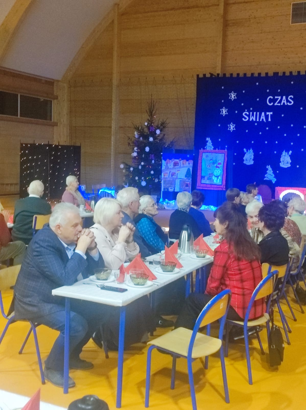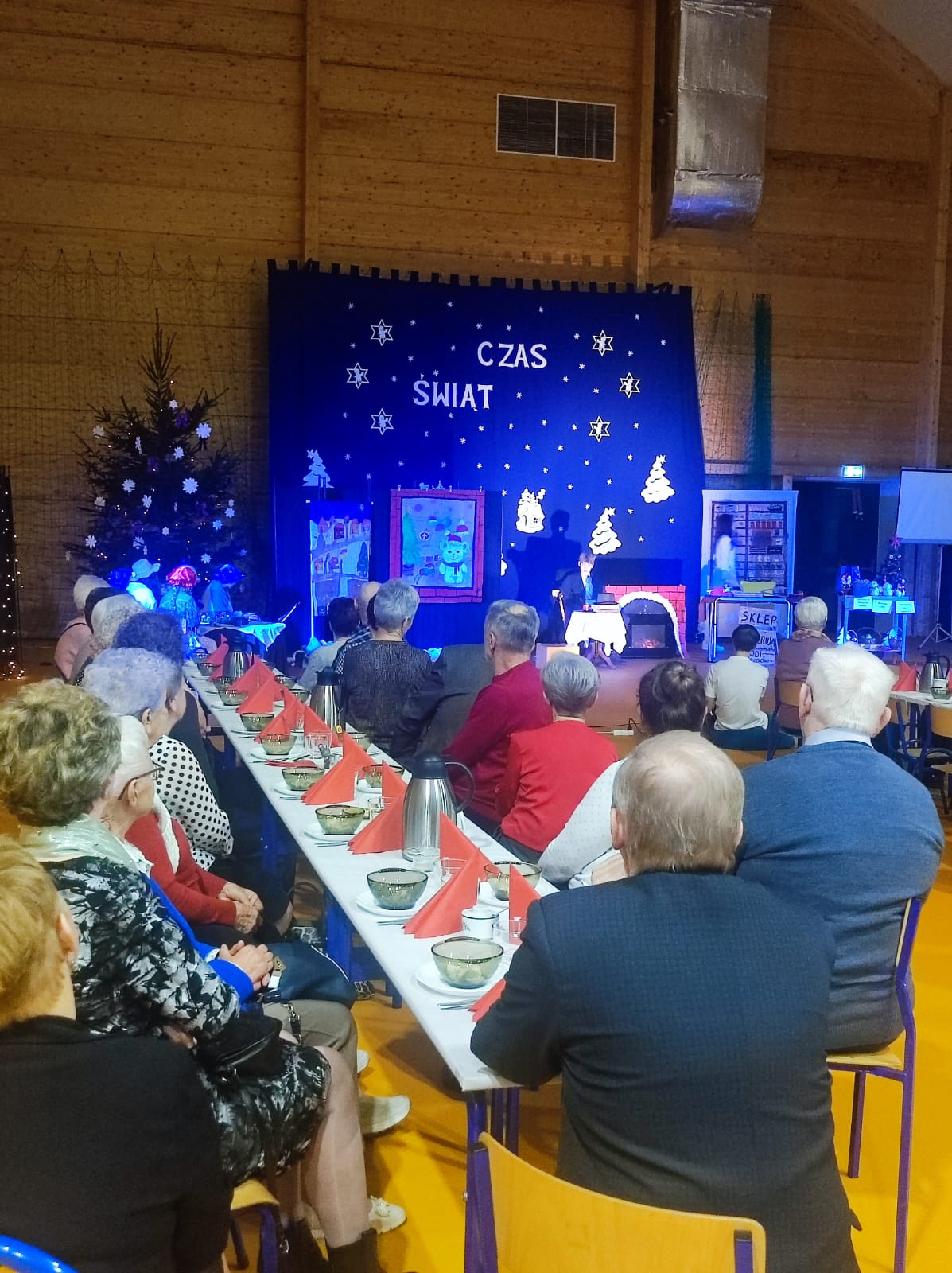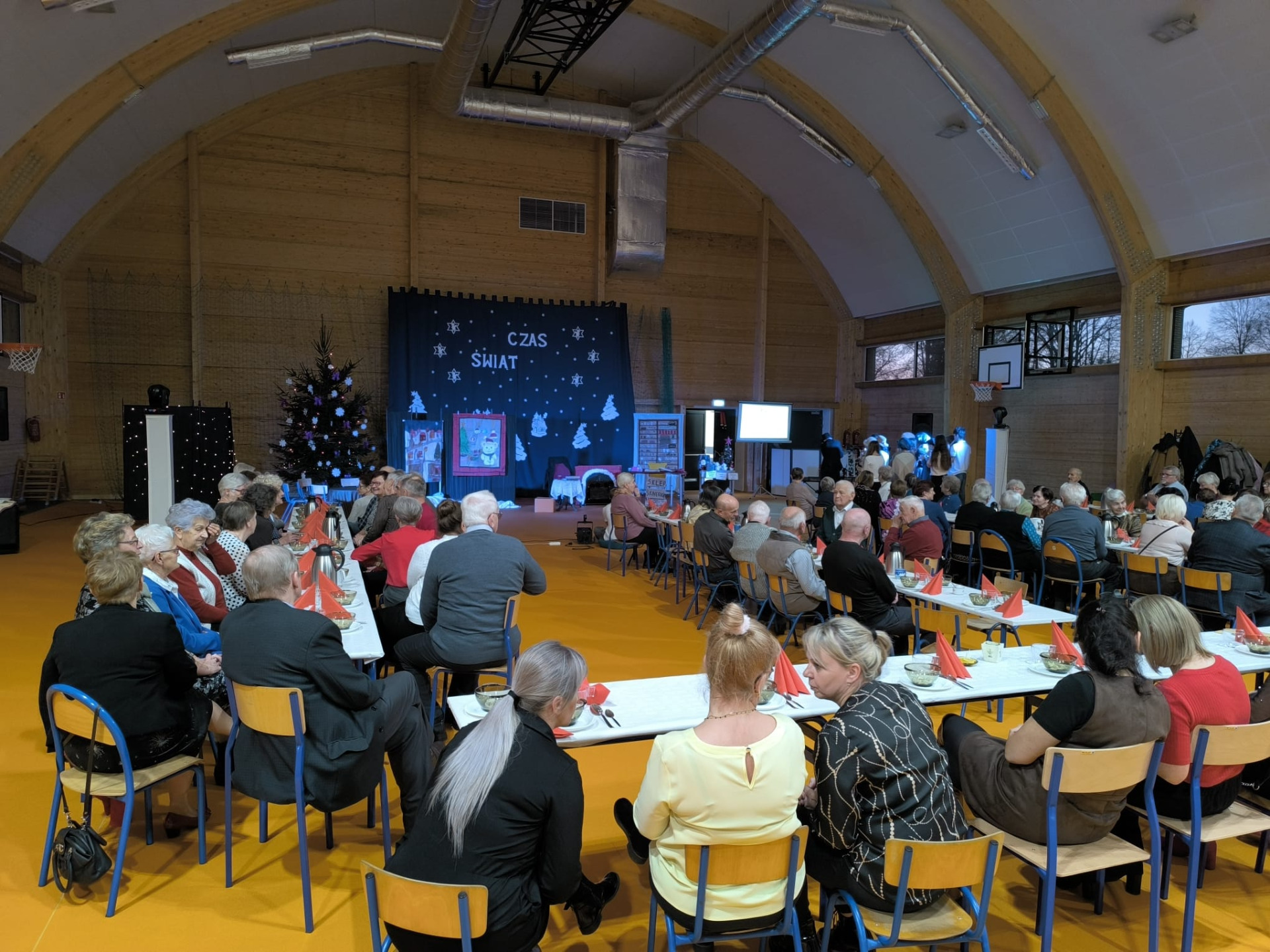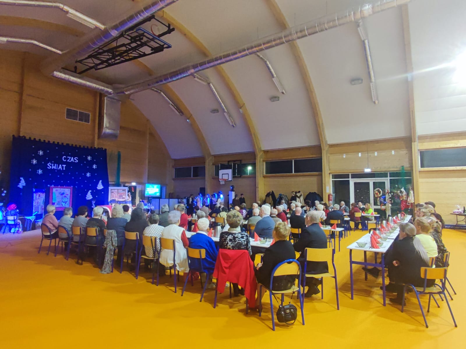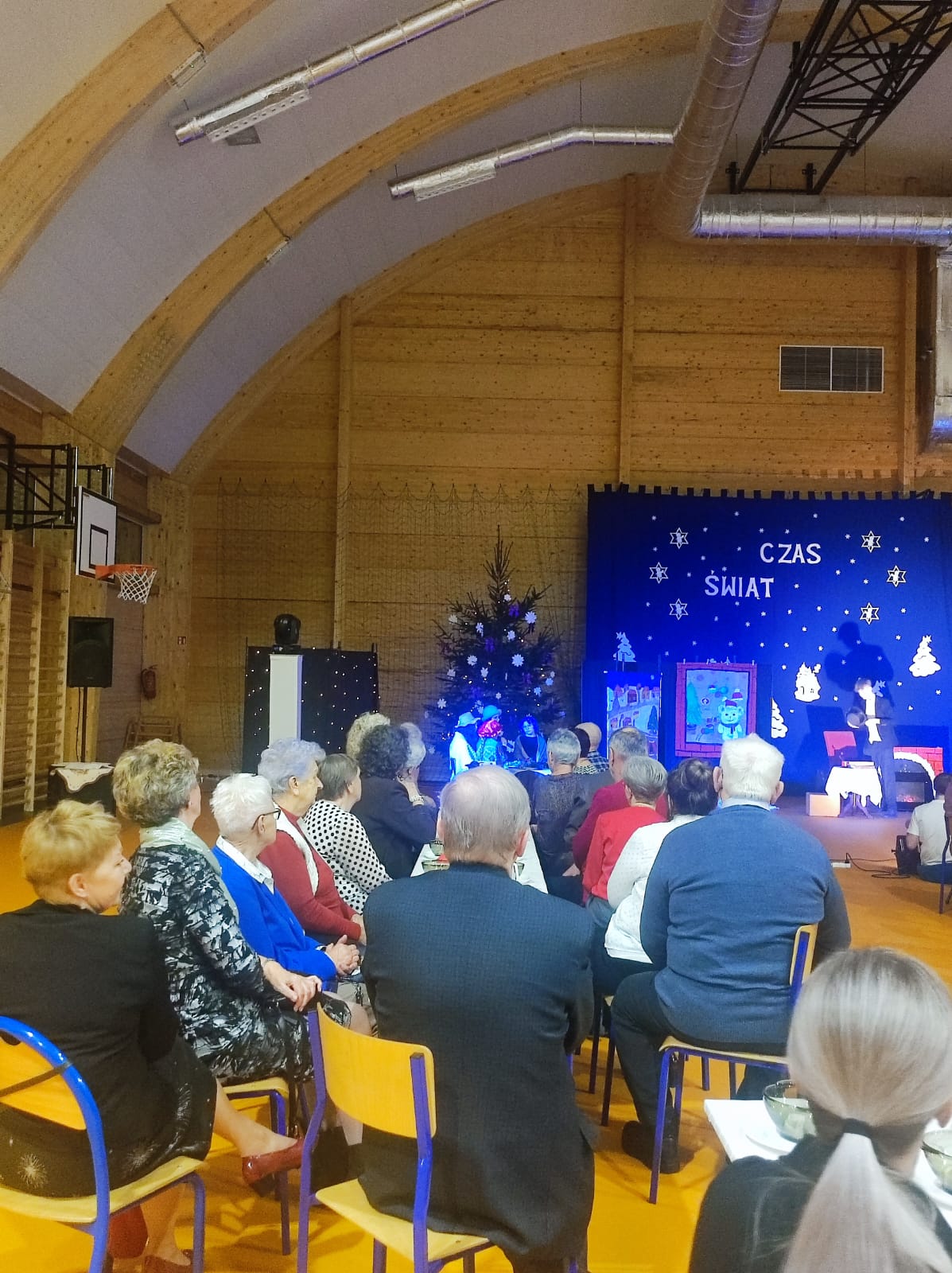 Dziś, po raz 25., odbyło się w naszej szkole Spotkanie Opłatkowe dla Seniorów. Pierwszy raz zorganizowaliśmy je nie na szkolnym holu lecz na naszej hali sportowej, która okazała się wspaniałym miejsce do organizowania tego typu uroczystości. Przybyli goście mieli okazję obejrzeć przedstawienie oparte na motywach "Opowieści wigilijnej" i posłuchać świątecznych piosenek oraz kolęd w wykonaniu naszych uzdolnionych muzycznie uczniów. Nie zabrakło też miejsca na wspólną modlitwę i życzenia oplatkowe. Nasze niezawodne Panie Kucharki z przedszkola przygotowaly tradycyjny barszcz z uszkami i makówki, a Rodzice upiekli przepyszne ciasta. Byl czas ba miłe rozmowy przy kawie i na wspomnienia. Mamy nadzieję , źe Goście wrócili do domów z Duchem Bożego Narodzenia w sercu. Dziękujemy wszystkim za przyjęcie naszego zaproszenia.