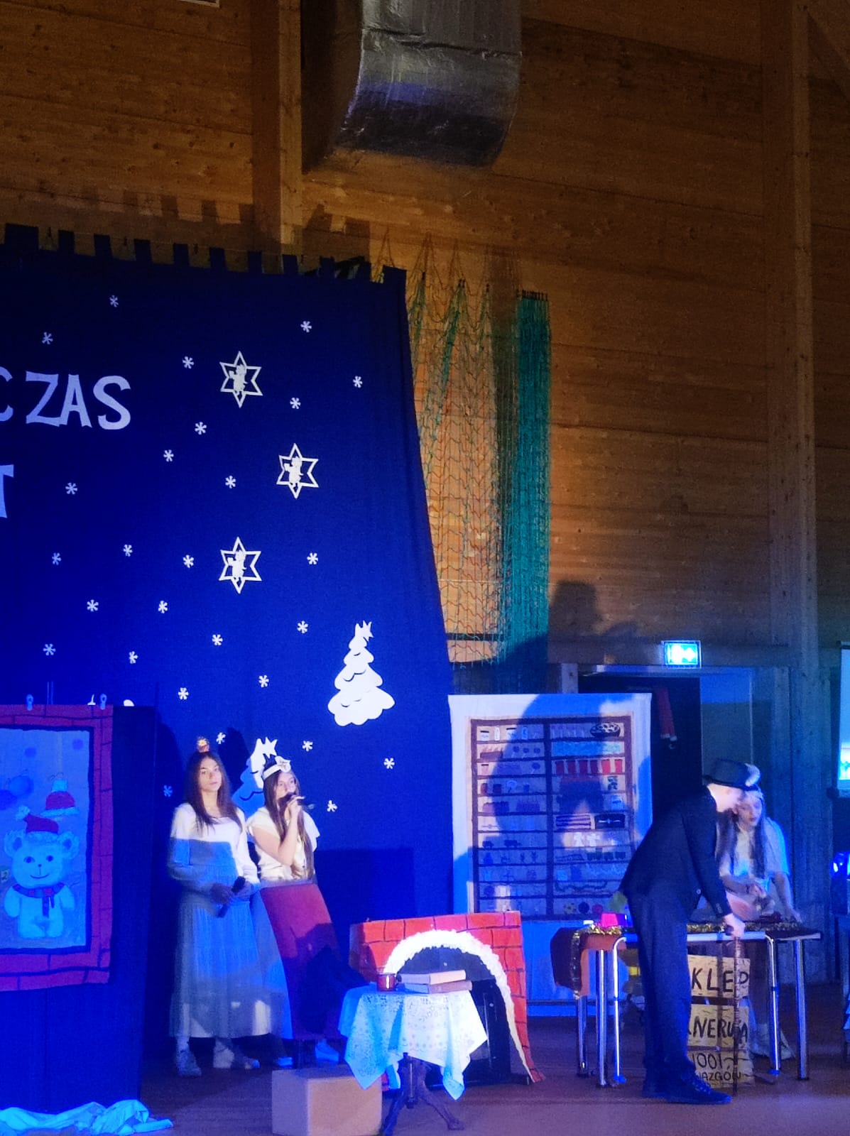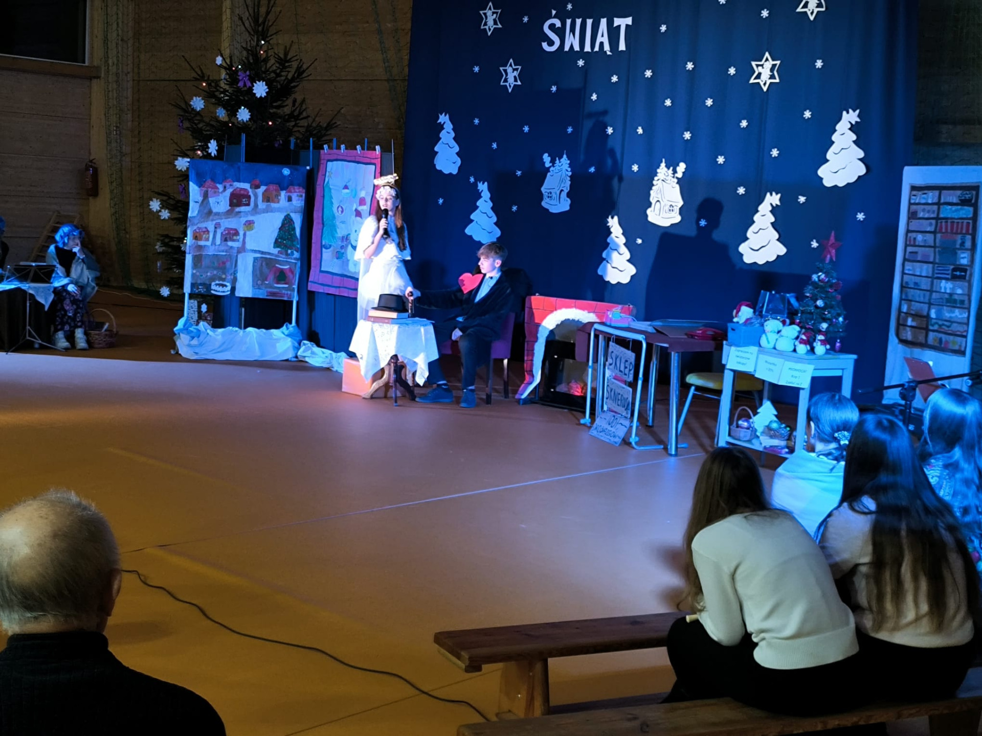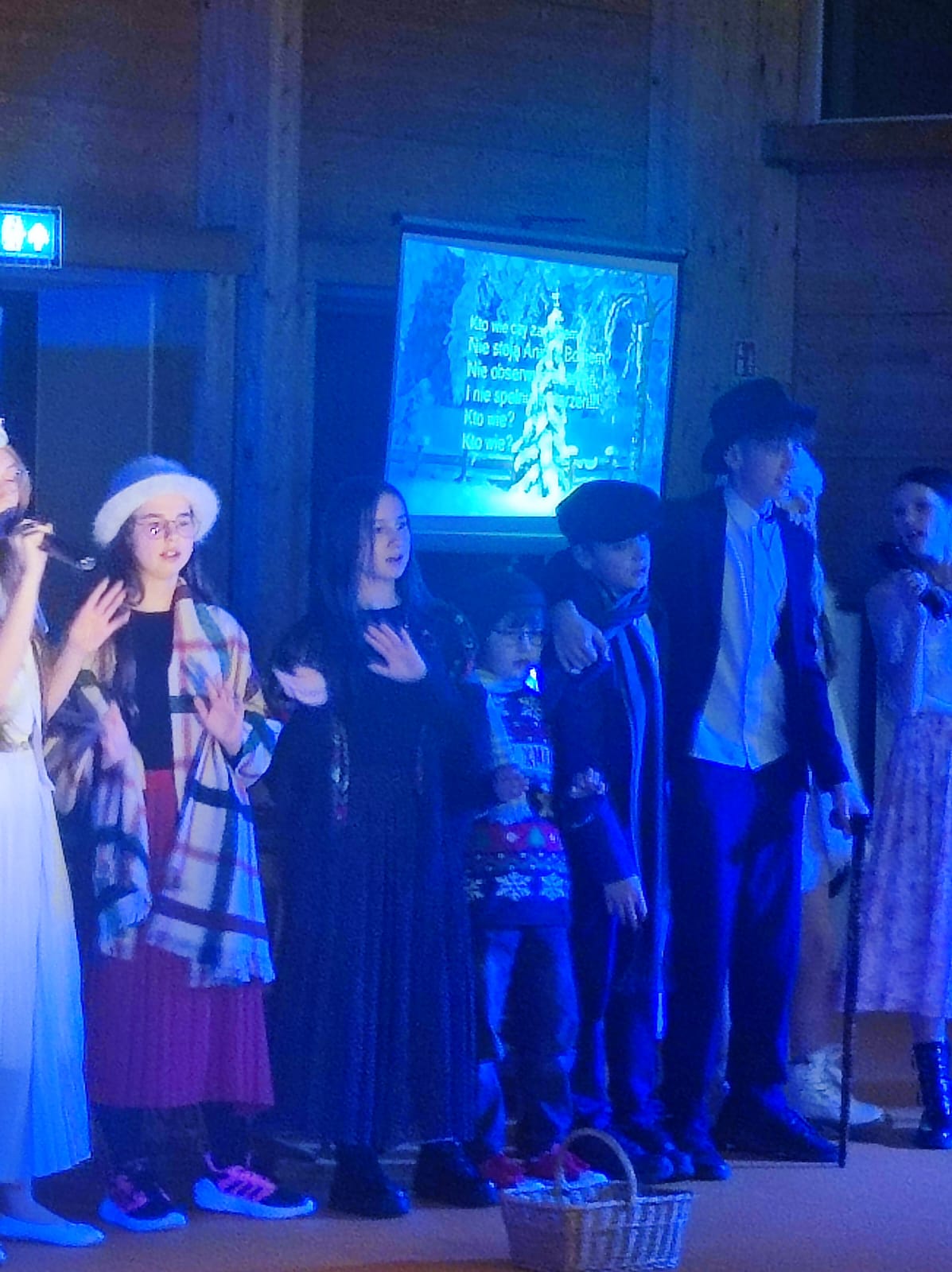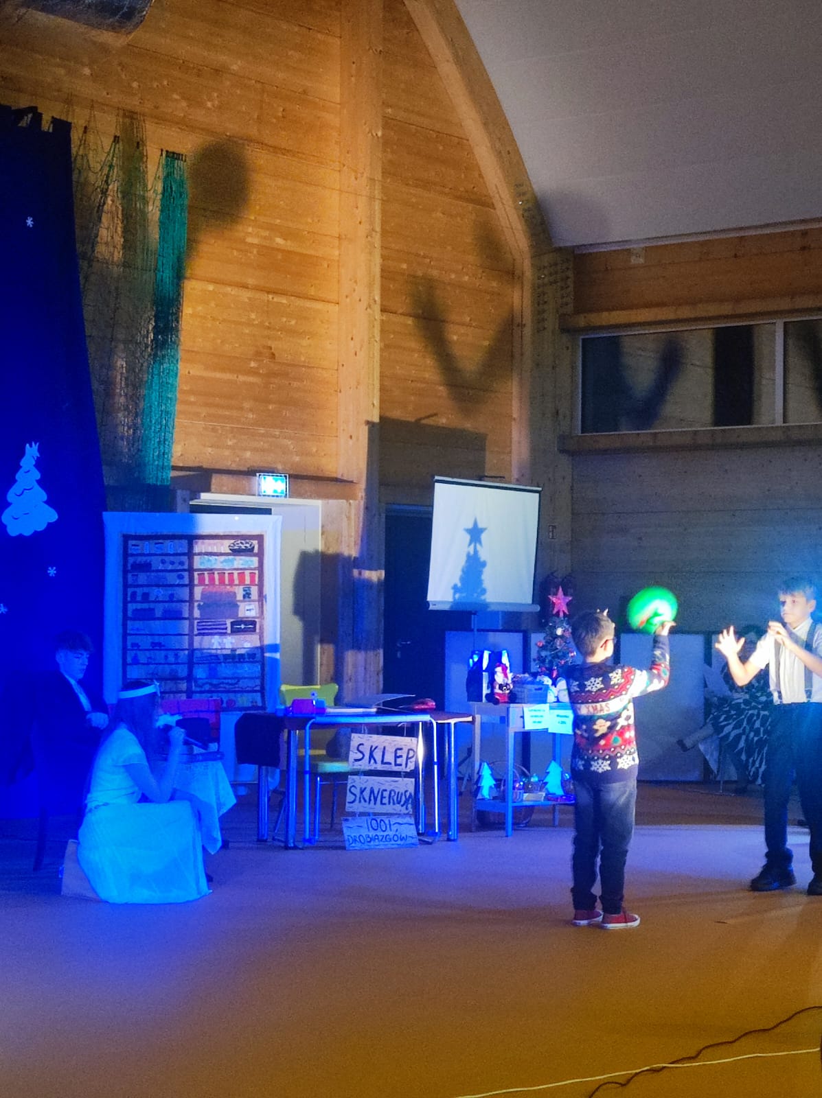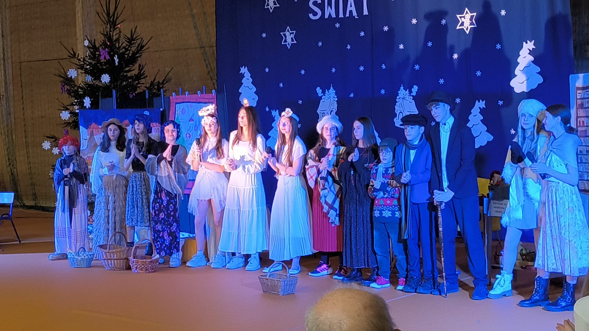 Dziś, po raz 25., odbyło się w naszej szkole Spotkanie Opłatkowe dla Seniorów. Pierwszy raz zorganizowaliśmy je nie na szkolnym holu lecz na naszej hali sportowej, która okazała się wspaniałym miejsce do organizowania tego typu uroczystości. Przybyli goście mieli okazję obejrzeć przedstawienie oparte na motywach "Opowieści wigilijnej" i posłuchać świątecznych piosenek oraz kolęd w wykonaniu naszych uzdolnionych muzycznie uczniów. Nie zabrakło też miejsca na wspólną modlitwę i życzenia oplatkowe. Nasze niezawodne Panie Kucharki z przedszkola przygotowaly tradycyjny barszcz z uszkami i makówki, a Rodzice upiekli przepyszne ciasta. Byl czas ba miłe rozmowy przy kawie i na wspomnienia. Mamy nadzieję , źe Goście wrócili do domów z Duchem Bożego Narodzenia w sercu. Dziękujemy wszystkim za przyjęcie naszego zaproszenia.
