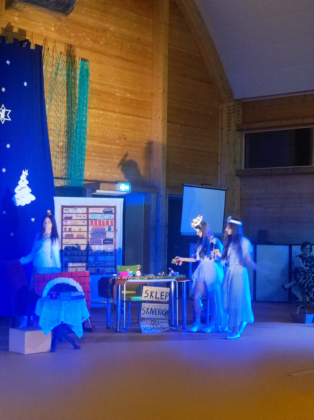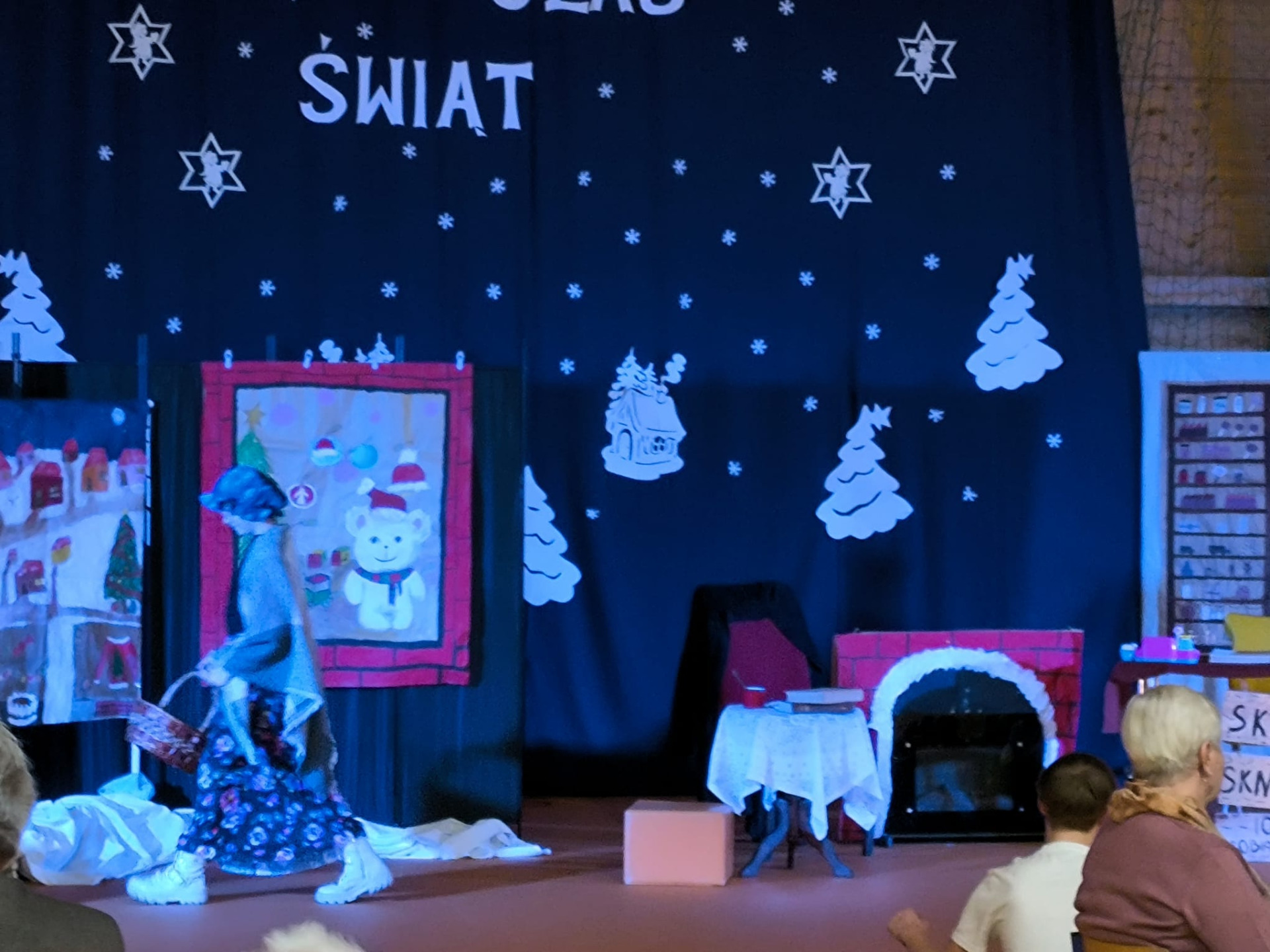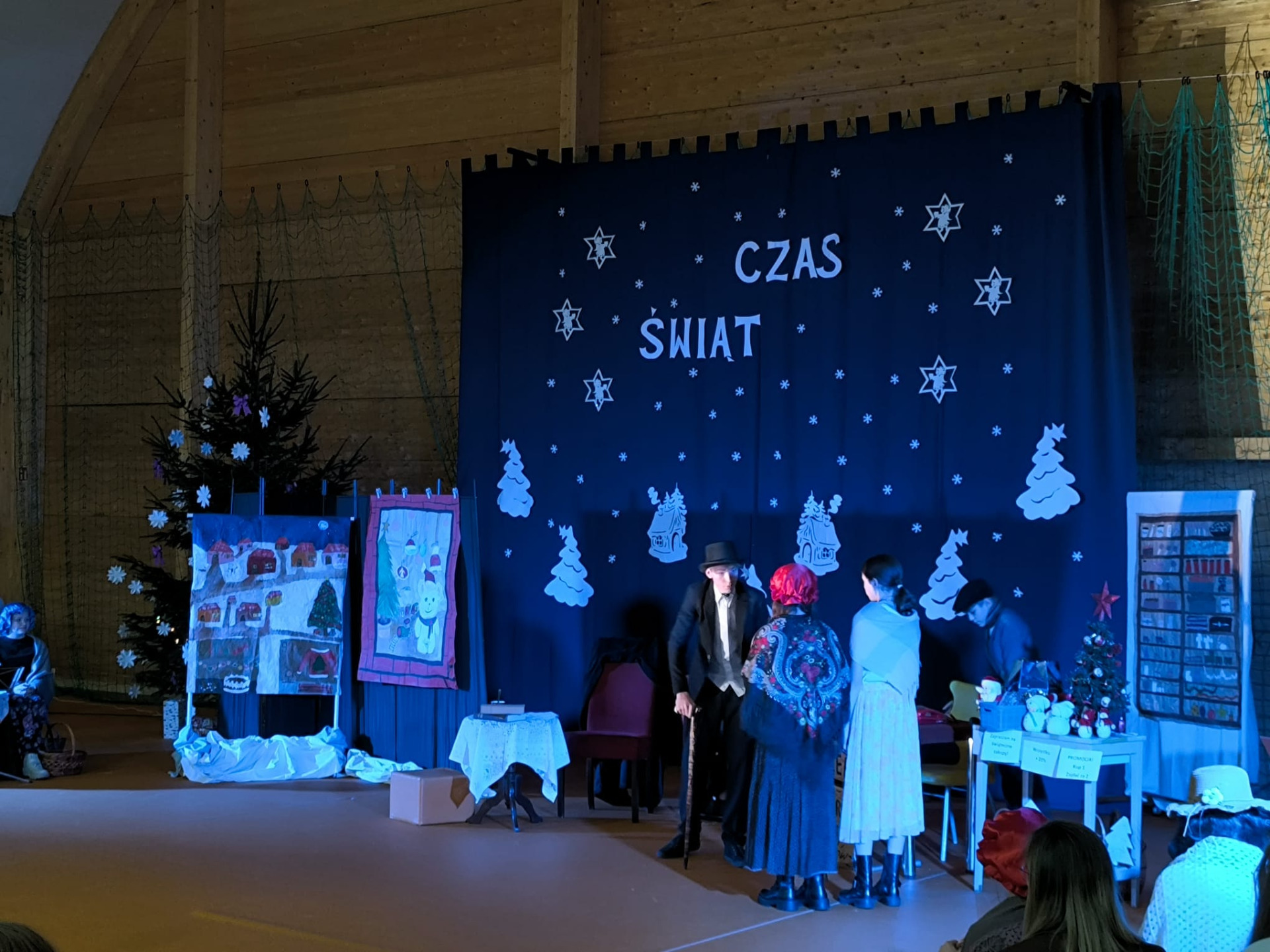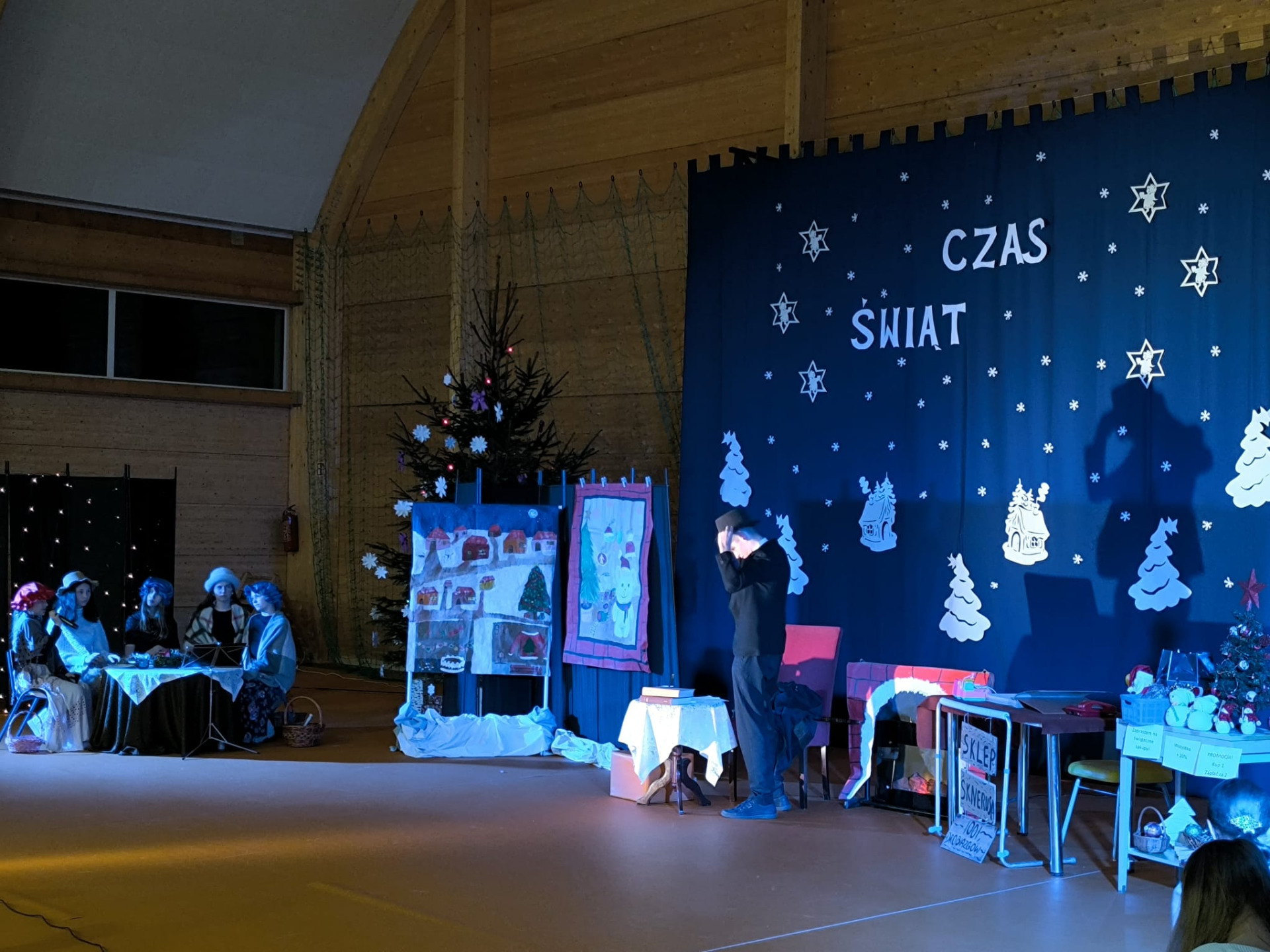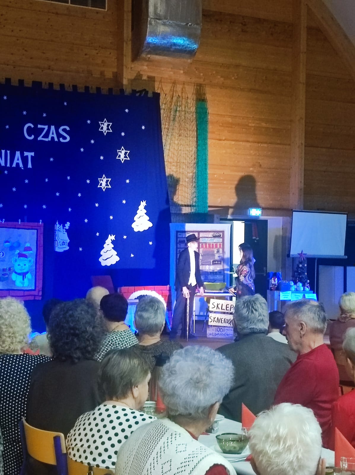 Dziś, po raz 25., odbyło się w naszej szkole Spotkanie Opłatkowe dla Seniorów. Pierwszy raz zorganizowaliśmy je nie na szkolnym holu lecz na naszej hali sportowej, która okazała się wspaniałym miejsce do organizowania tego typu uroczystości. Przybyli goście mieli okazję obejrzeć przedstawienie oparte na motywach "Opowieści wigilijnej" i posłuchać świątecznych piosenek oraz kolęd w wykonaniu naszych uzdolnionych muzycznie uczniów. Nie zabrakło też miejsca na wspólną modlitwę i życzenia oplatkowe. Nasze niezawodne Panie Kucharki z przedszkola przygotowaly tradycyjny barszcz z uszkami i makówki, a Rodzice upiekli przepyszne ciasta. Byl czas ba miłe rozmowy przy kawie i na wspomnienia. Mamy nadzieję , źe Goście wrócili do domów z Duchem Bożego Narodzenia w sercu. Dziękujemy wszystkim za przyjęcie naszego zaproszenia.
