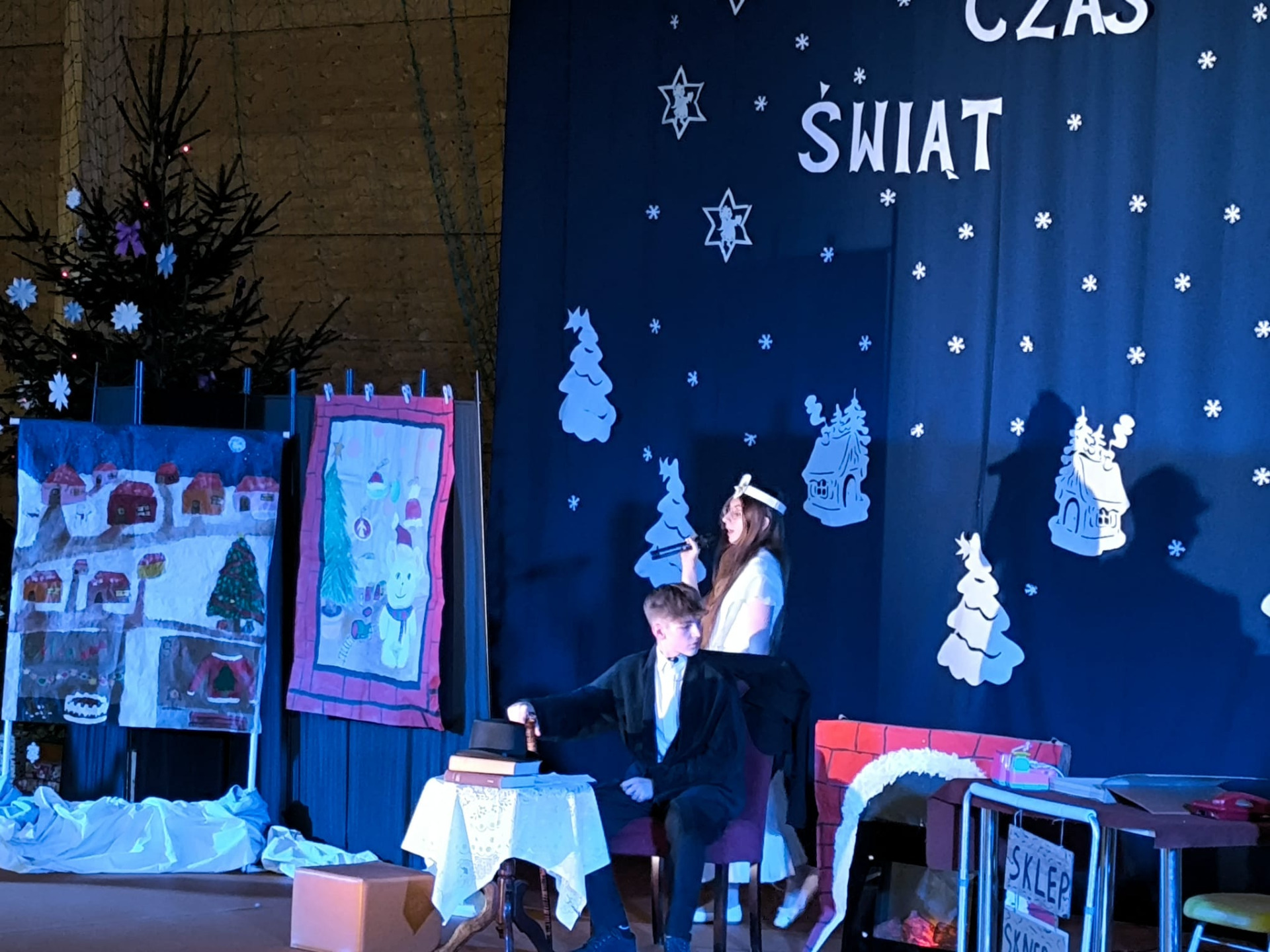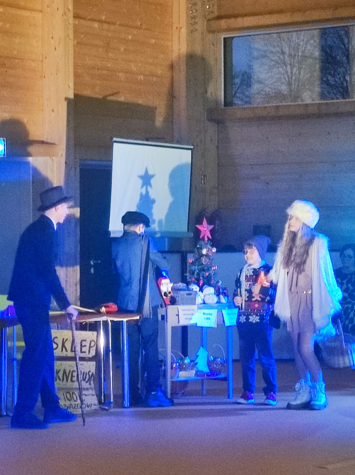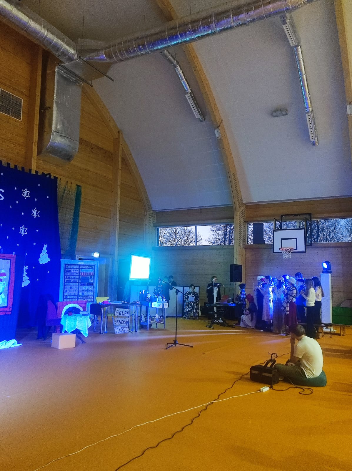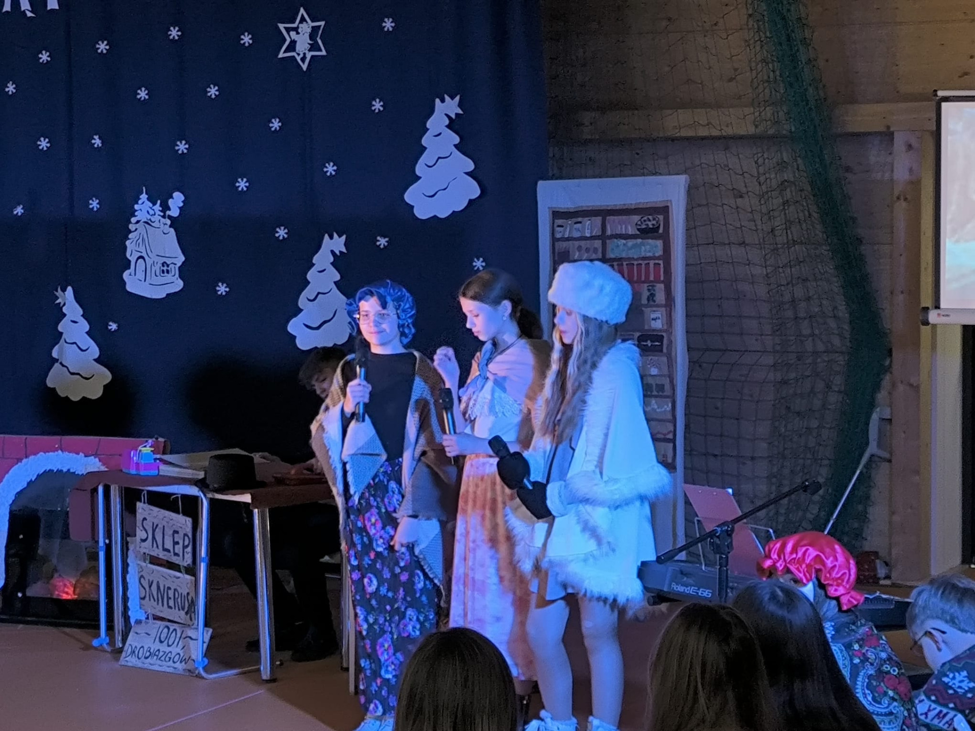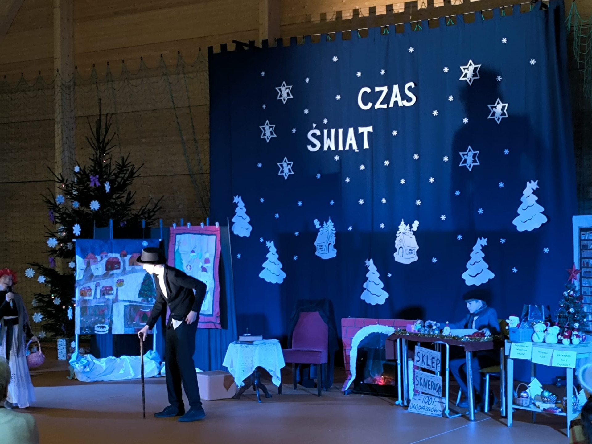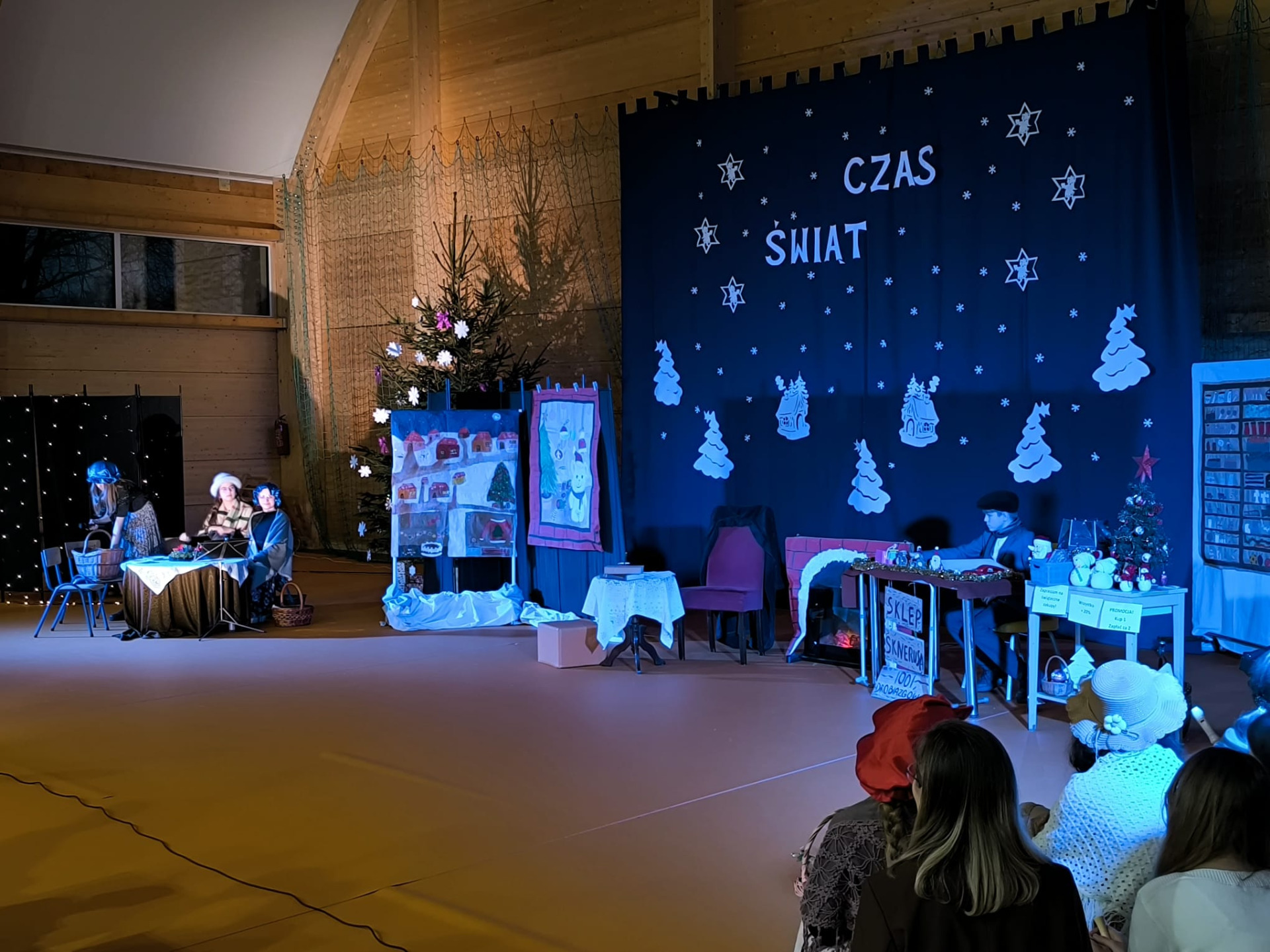 Dziś, po raz 25., odbyło się w naszej szkole Spotkanie Opłatkowe dla Seniorów. Pierwszy raz zorganizowaliśmy je nie na szkolnym holu lecz na naszej hali sportowej, która okazała się wspaniałym miejsce do organizowania tego typu uroczystości. Przybyli goście mieli okazję obejrzeć przedstawienie oparte na motywach "Opowieści wigilijnej" i posłuchać świątecznych piosenek oraz kolęd w wykonaniu naszych uzdolnionych muzycznie uczniów. Nie zabrakło też miejsca na wspólną modlitwę i życzenia oplatkowe. Nasze niezawodne Panie Kucharki z przedszkola przygotowaly tradycyjny barszcz z uszkami i makówki, a Rodzice upiekli przepyszne ciasta. Byl czas ba miłe rozmowy przy kawie i na wspomnienia. Mamy nadzieję , źe Goście wrócili do domów z Duchem Bożego Narodzenia w sercu. Dziękujemy wszystkim za przyjęcie naszego zaproszenia.