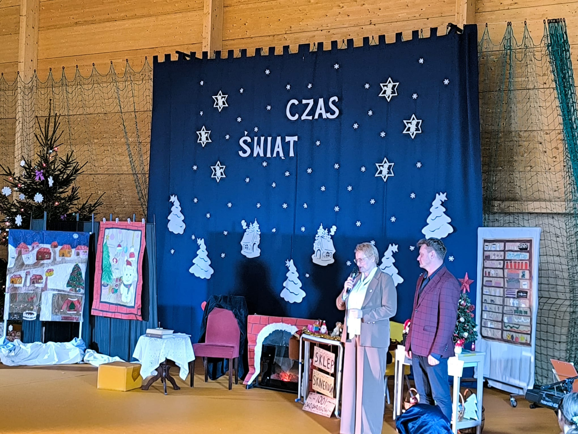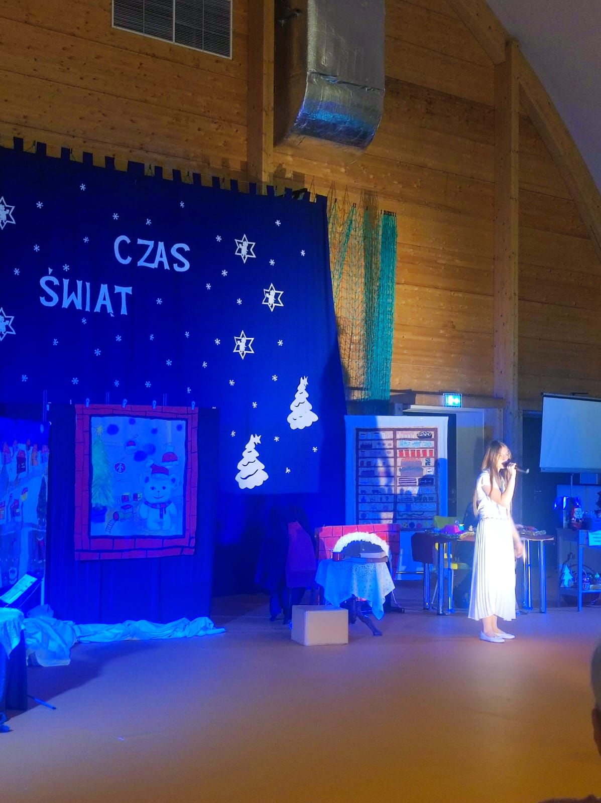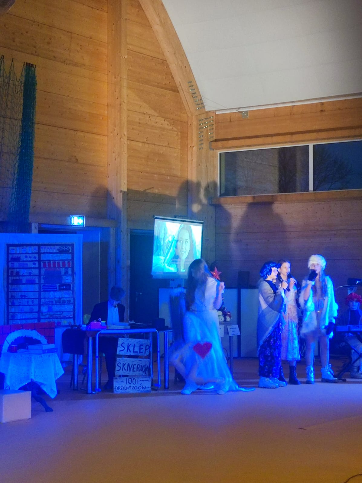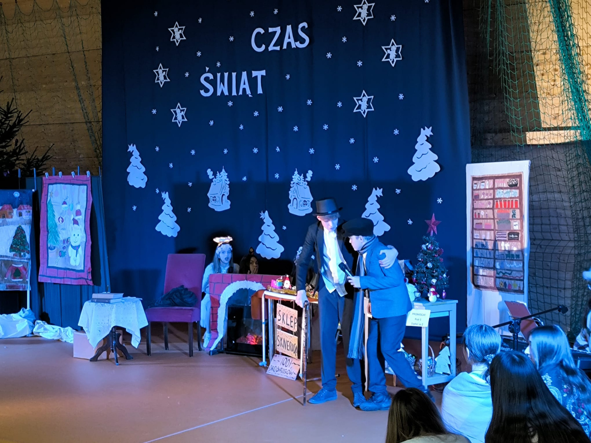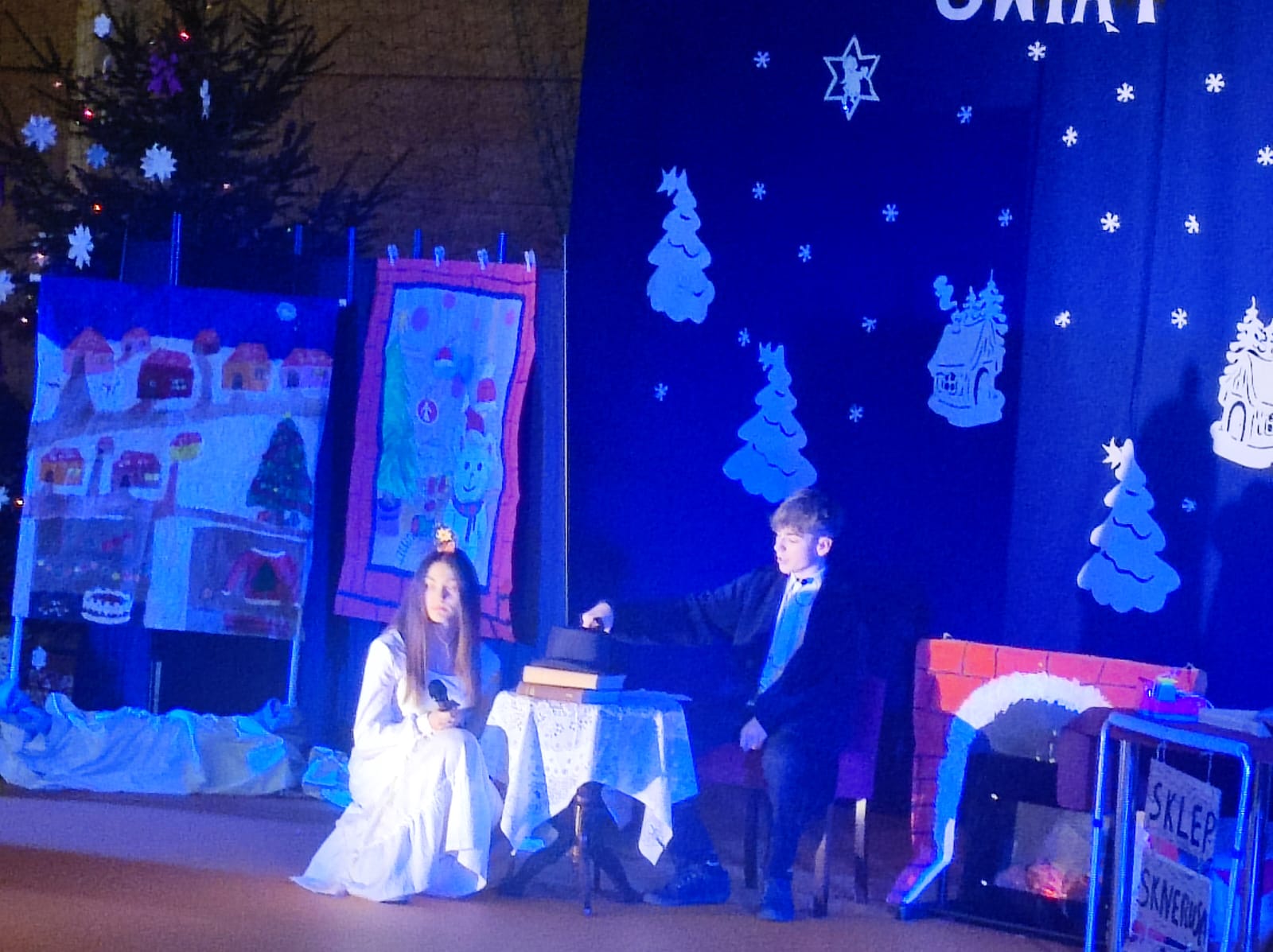 Dziś, po raz 25., odbyło się w naszej szkole Spotkanie Opłatkowe dla Seniorów. Pierwszy raz zorganizowaliśmy je nie na szkolnym holu lecz na naszej hali sportowej, która okazała się wspaniałym miejsce do organizowania tego typu uroczystości. Przybyli goście mieli okazję obejrzeć przedstawienie oparte na motywach "Opowieści wigilijnej" i posłuchać świątecznych piosenek oraz kolęd w wykonaniu naszych uzdolnionych muzycznie uczniów. Nie zabrakło też miejsca na wspólną modlitwę i życzenia oplatkowe. Nasze niezawodne Panie Kucharki z przedszkola przygotowaly tradycyjny barszcz z uszkami i makówki, a Rodzice upiekli przepyszne ciasta. Byl czas ba miłe rozmowy przy kawie i na wspomnienia. Mamy nadzieję , źe Goście wrócili do domów z Duchem Bożego Narodzenia w sercu. Dziękujemy wszystkim za przyjęcie naszego zaproszenia.