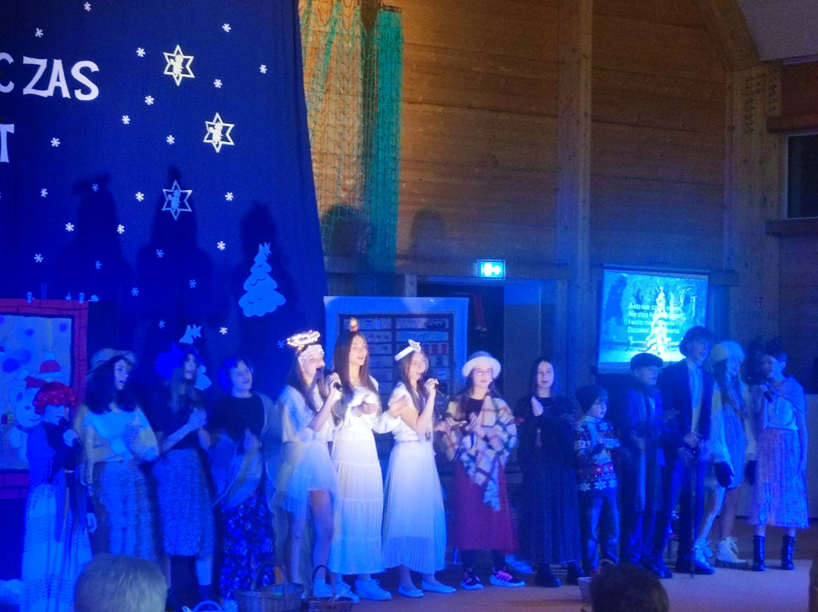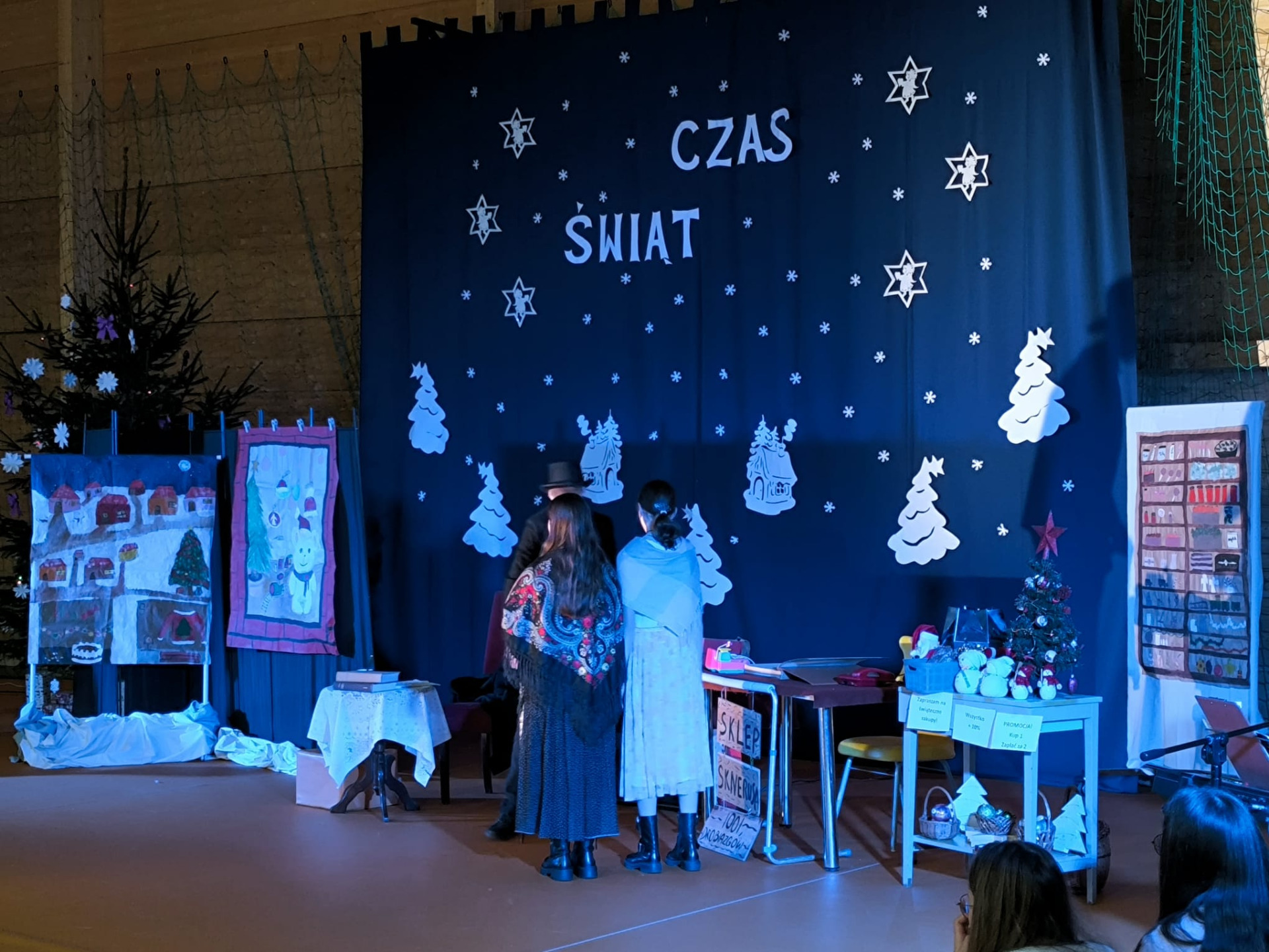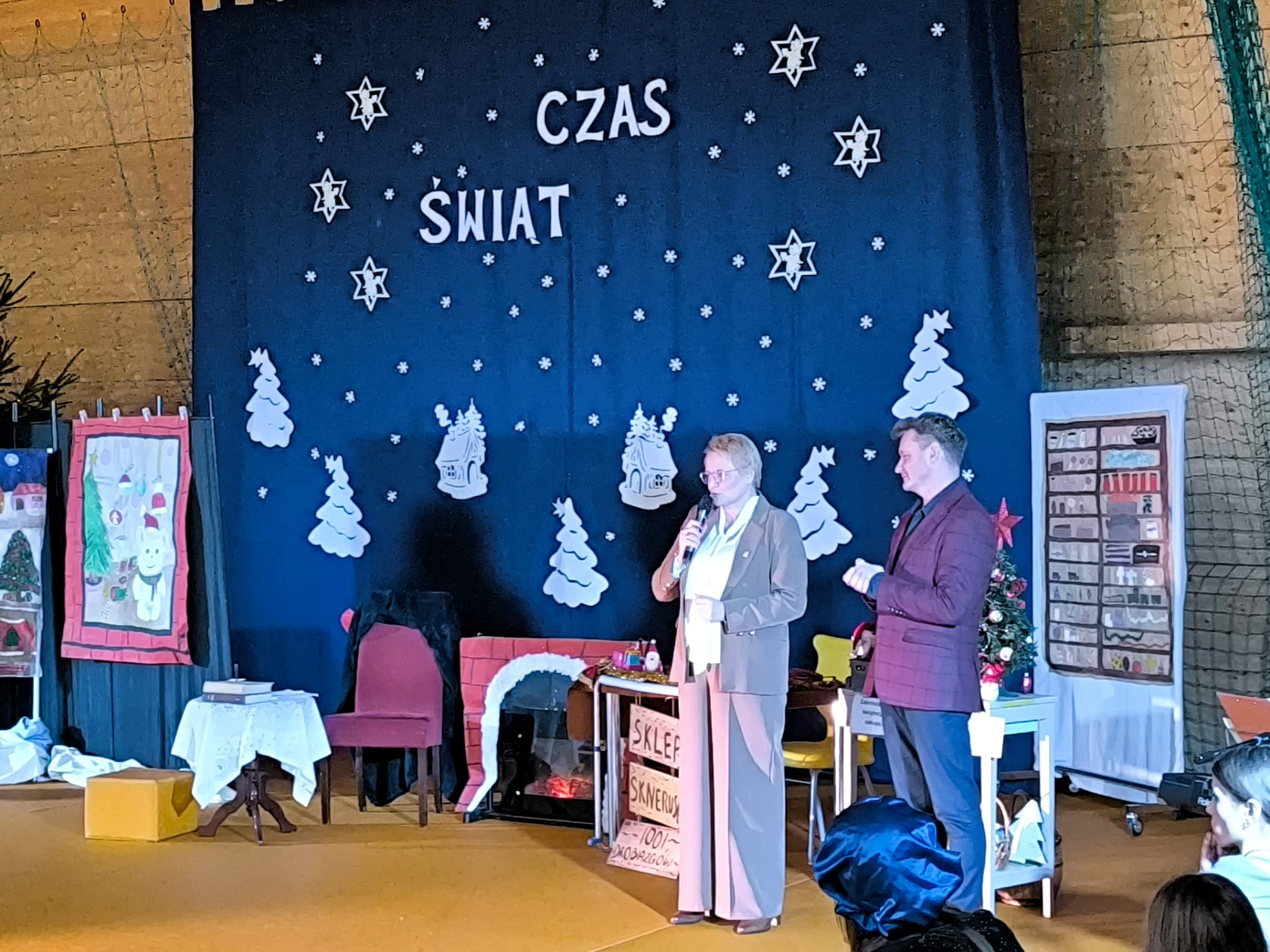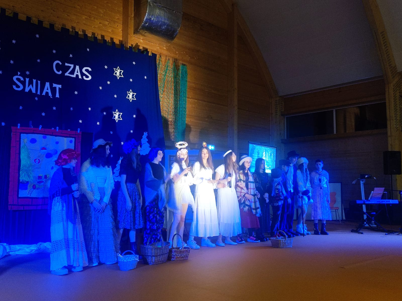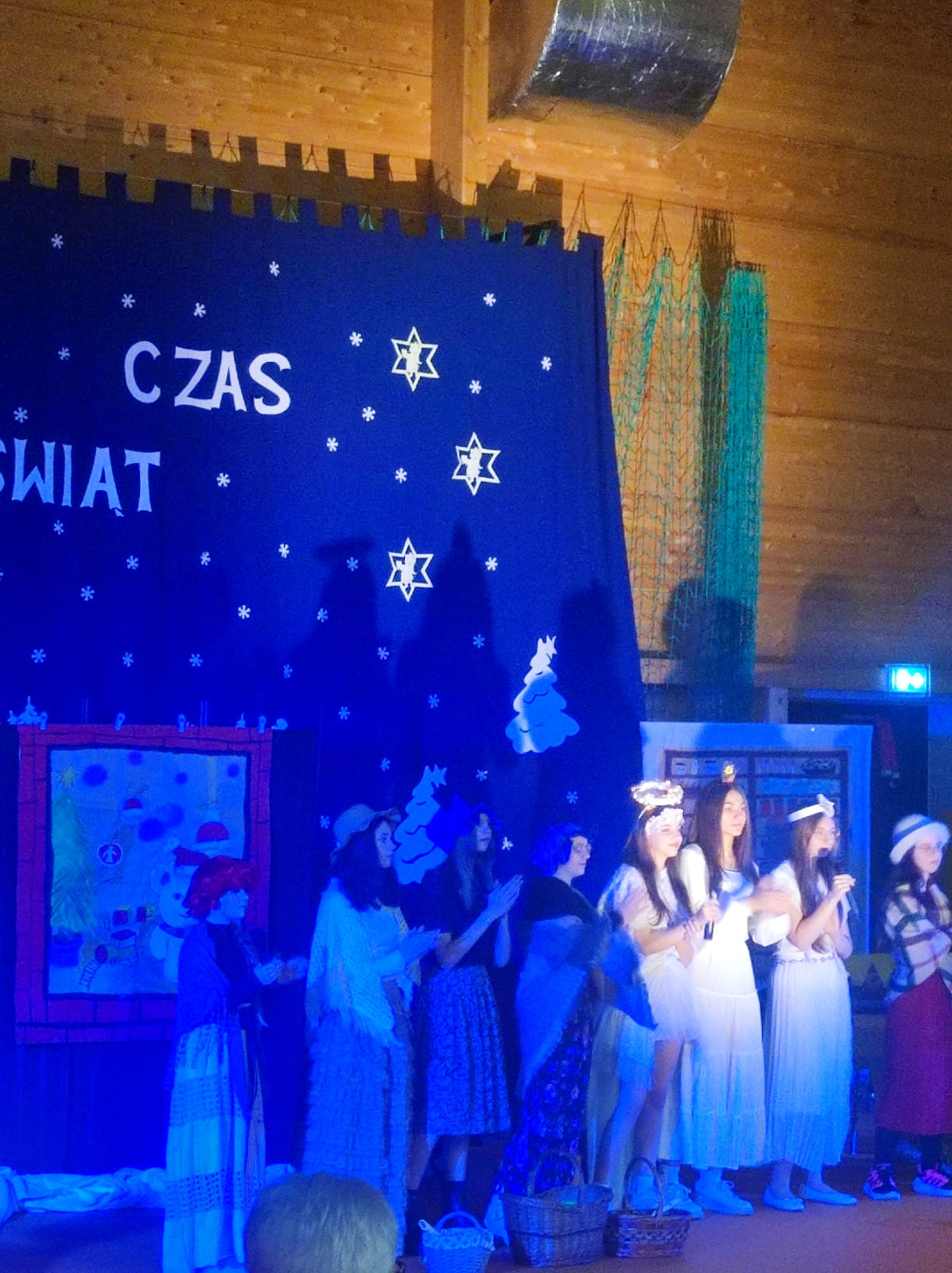Dziś, po raz 25., odbyło się w naszej szkole Spotkanie Opłatkowe dla Seniorów. Pierwszy raz zorganizowaliśmy je nie na szkolnym holu lecz na naszej hali sportowej, która okazała się wspaniałym miejsce do organizowania tego typu uroczystości. Przybyli goście mieli okazję obejrzeć przedstawienie oparte na motywach "Opowieści wigilijnej" i posłuchać świątecznych piosenek oraz kolęd w wykonaniu naszych uzdolnionych muzycznie uczniów. Nie zabrakło też miejsca na wspólną modlitwę i życzenia oplatkowe. Nasze niezawodne Panie Kucharki z przedszkola przygotowaly tradycyjny barszcz z uszkami i makówki, a Rodzice upiekli przepyszne ciasta. Byl czas ba miłe rozmowy przy kawie i na wspomnienia. Mamy nadzieję , źe Goście wrócili do domów z Duchem Bożego Narodzenia w sercu. Dziękujemy wszystkim za przyjęcie naszego zaproszenia.