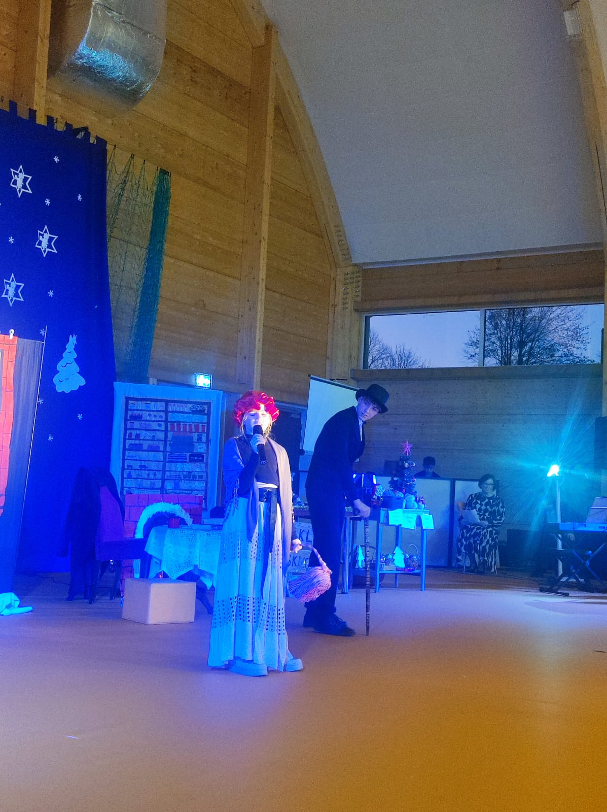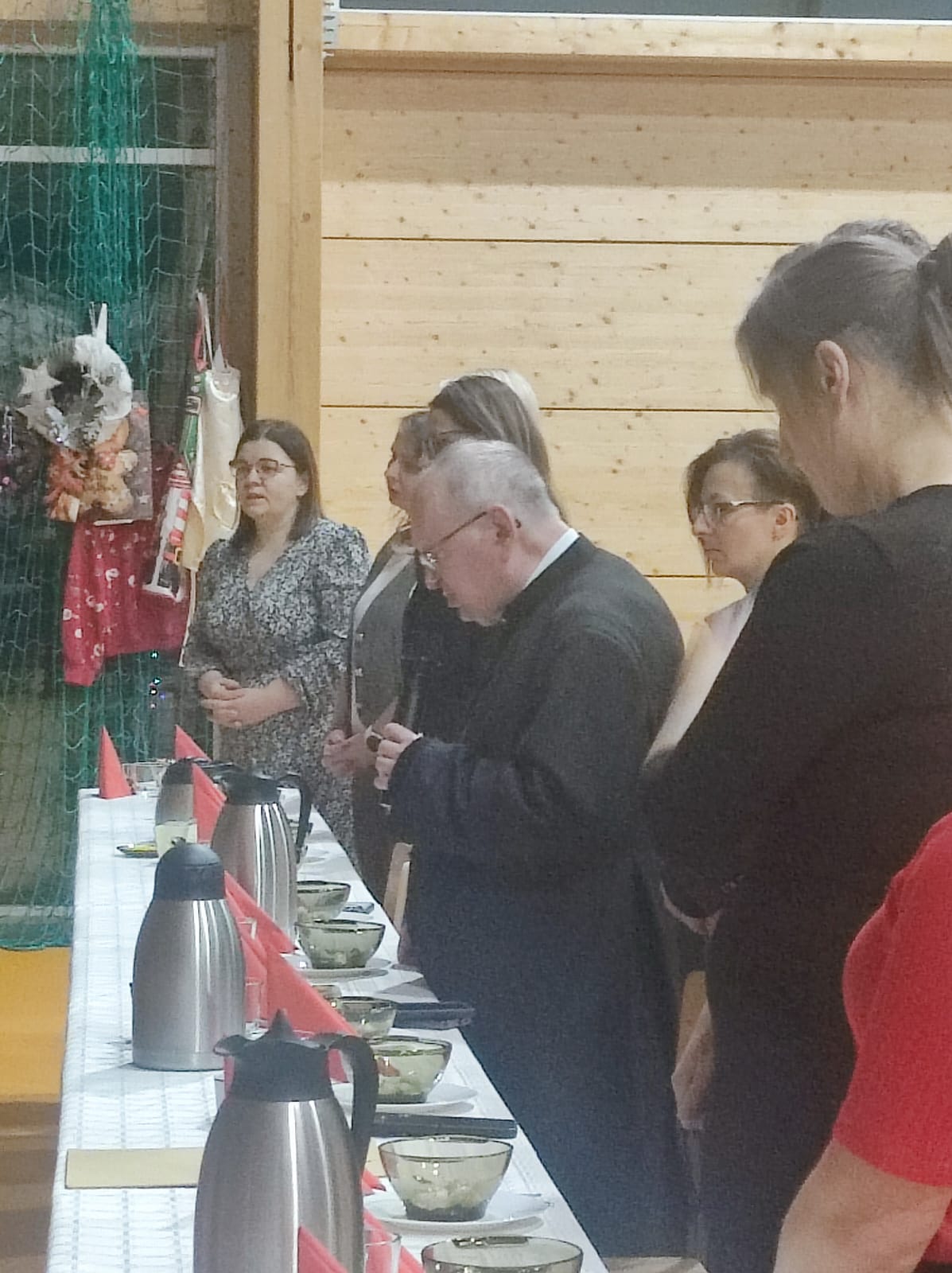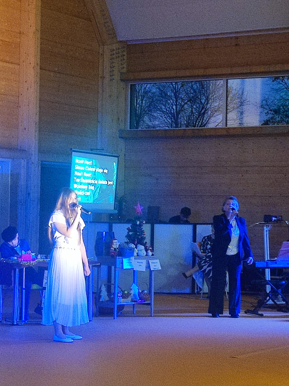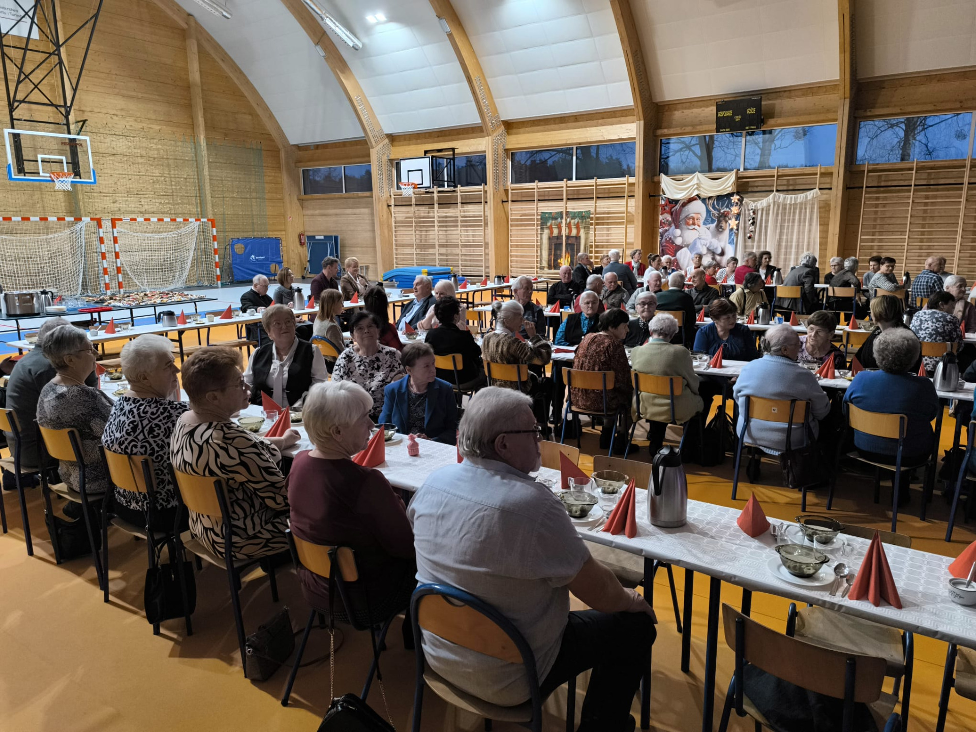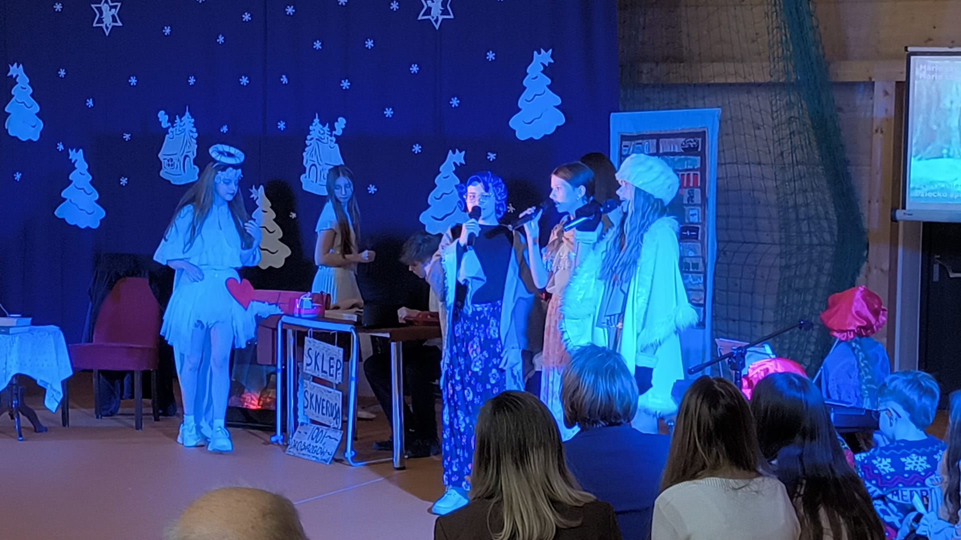 Dziś, po raz 25., odbyło się w naszej szkole Spotkanie Opłatkowe dla Seniorów. Pierwszy raz zorganizowaliśmy je nie na szkolnym holu lecz na naszej hali sportowej, która okazała się wspaniałym miejsce do organizowania tego typu uroczystości. Przybyli goście mieli okazję obejrzeć przedstawienie oparte na motywach "Opowieści wigilijnej" i posłuchać świątecznych piosenek oraz kolęd w wykonaniu naszych uzdolnionych muzycznie uczniów. Nie zabrakło też miejsca na wspólną modlitwę i życzenia oplatkowe. Nasze niezawodne Panie Kucharki z przedszkola przygotowaly tradycyjny barszcz z uszkami i makówki, a Rodzice upiekli przepyszne ciasta. Byl czas ba miłe rozmowy przy kawie i na wspomnienia. Mamy nadzieję , źe Goście wrócili do domów z Duchem Bożego Narodzenia w sercu. Dziękujemy wszystkim za przyjęcie naszego zaproszenia.