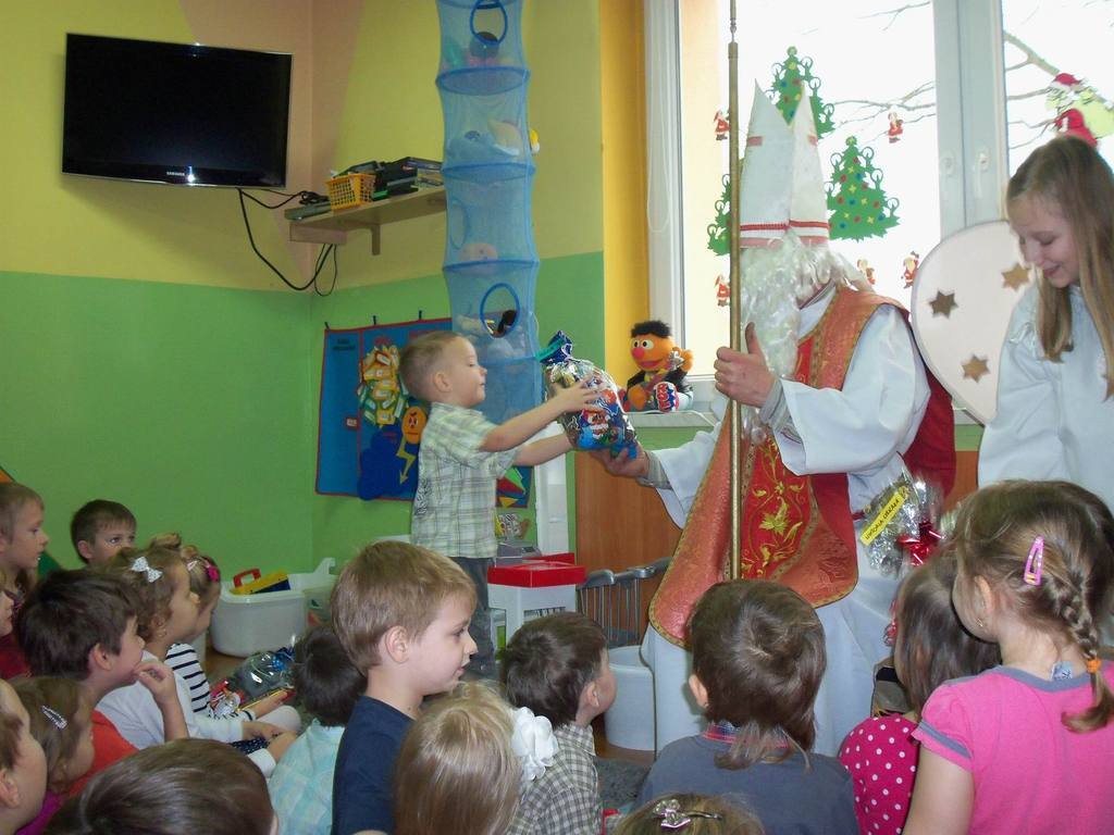 Na ten dzień wszystkie dzieci bardzo długo czekały, a lista prezentów nie miała końca. Przedszkolaki powitały św. Mikołaja piosenkami. Wszyscy bardzo cieszyli się ze słodkich prezentów. Dzieci miały bardzo dużo pytań do szanownego gościa, dlatego też chciały, aby został z nimi jak najdłużej. Zachęcamy do obejrzenia zdjęć.