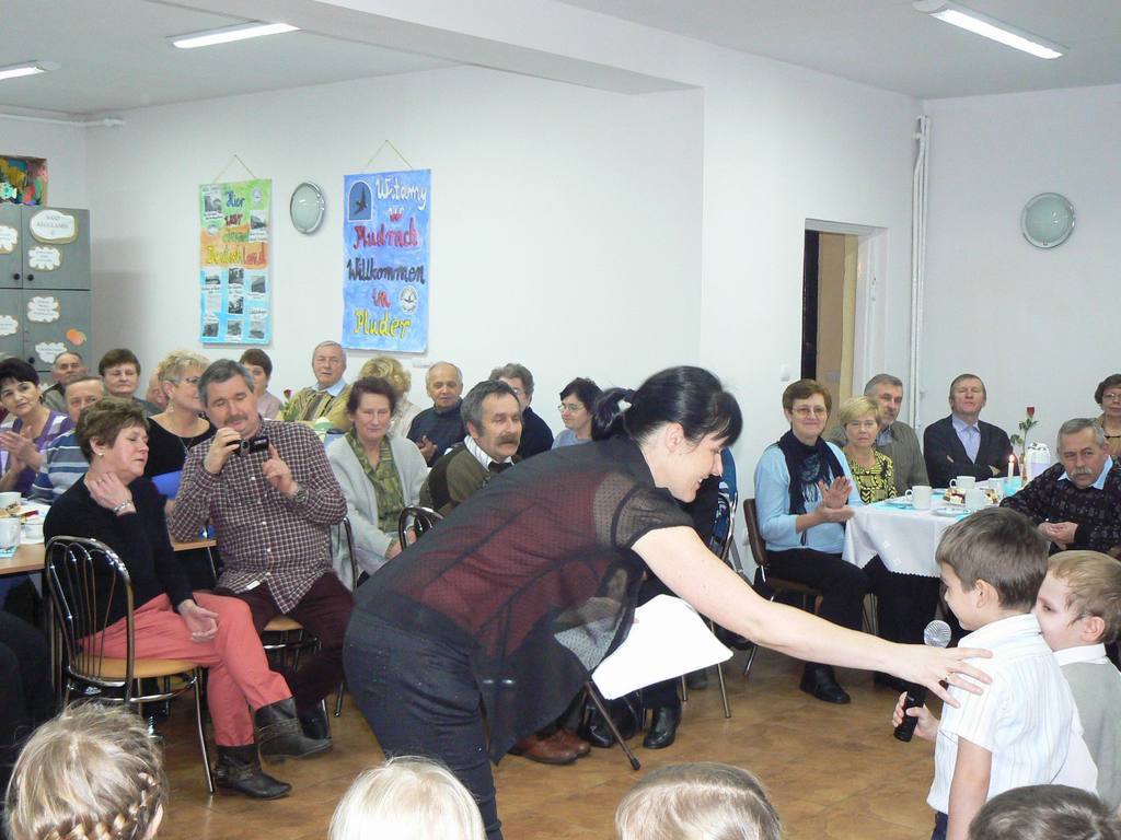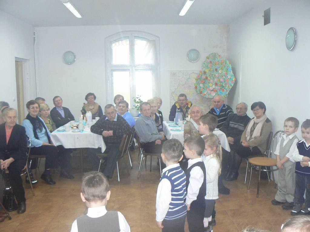 Dnia 21.012014r przedszkolaki gościły Babcie i Dziadków z okazji ich święta. Impreza odbyła się w budynku starej szkoły. Dzieci zaprezentowały gościom swoje umiejętności artystyczne ,obdarowały ich prezentami w postaci świeczników - serduszek, laurek oraz dyplomów. Zabawa była wspaniała , pełna radości, uśmiechów ,a nawet wzruszeń.