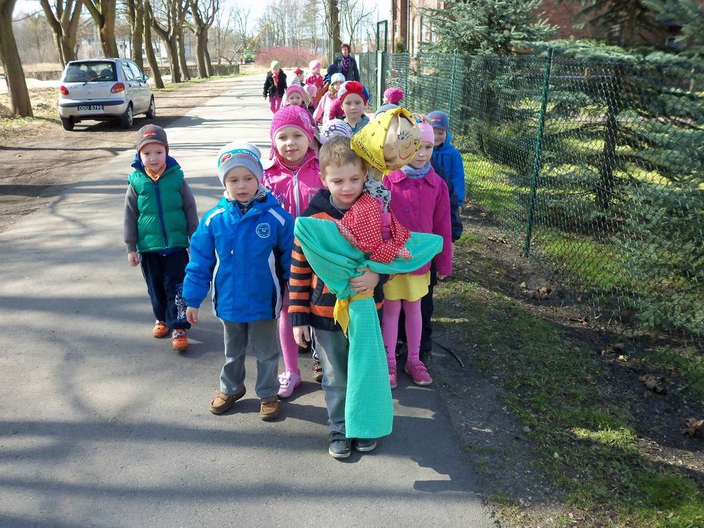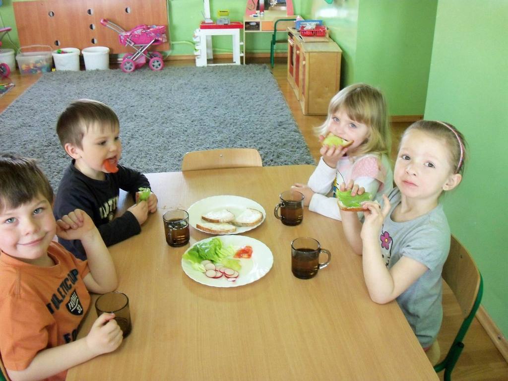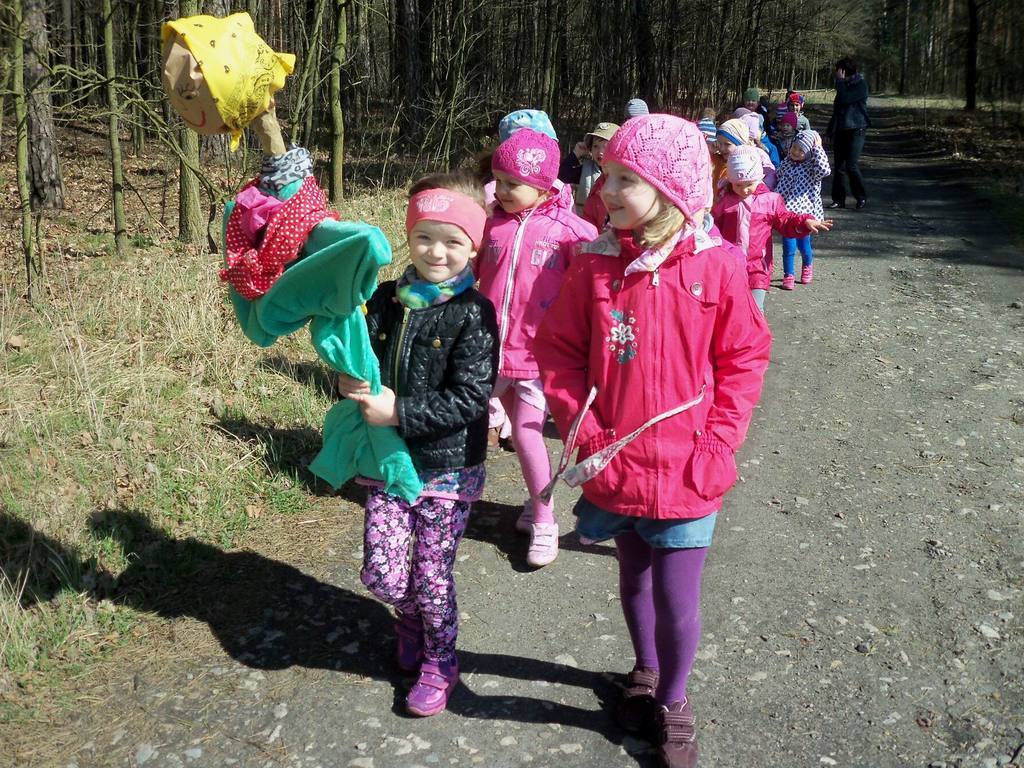 Przedszkolaki dzisiaj powitały wiosnę, a zrobiły to już od samego rana, gdyż na śniadanie były wiosenne kanapki, które każdy mógł samodzielnie komponować. Na talerzach nie zabrakło pomidorów, ogórków, sałaty i rzodkiewek. Później wspólnie robiliśmy Marzannę, z którą to wyruszyliśmy na wiosenny spacer. Z lasu przynieśliśmy gałązki, które dzieci będą obserwowoały, jak z pąków rozwijają się liście. Dla wszystkich ten dzień był bardzo udany. Po powrocie do przedszkola dzieci otrzymały od Rady Rodziców soczki- serdecznie dzięujemy.